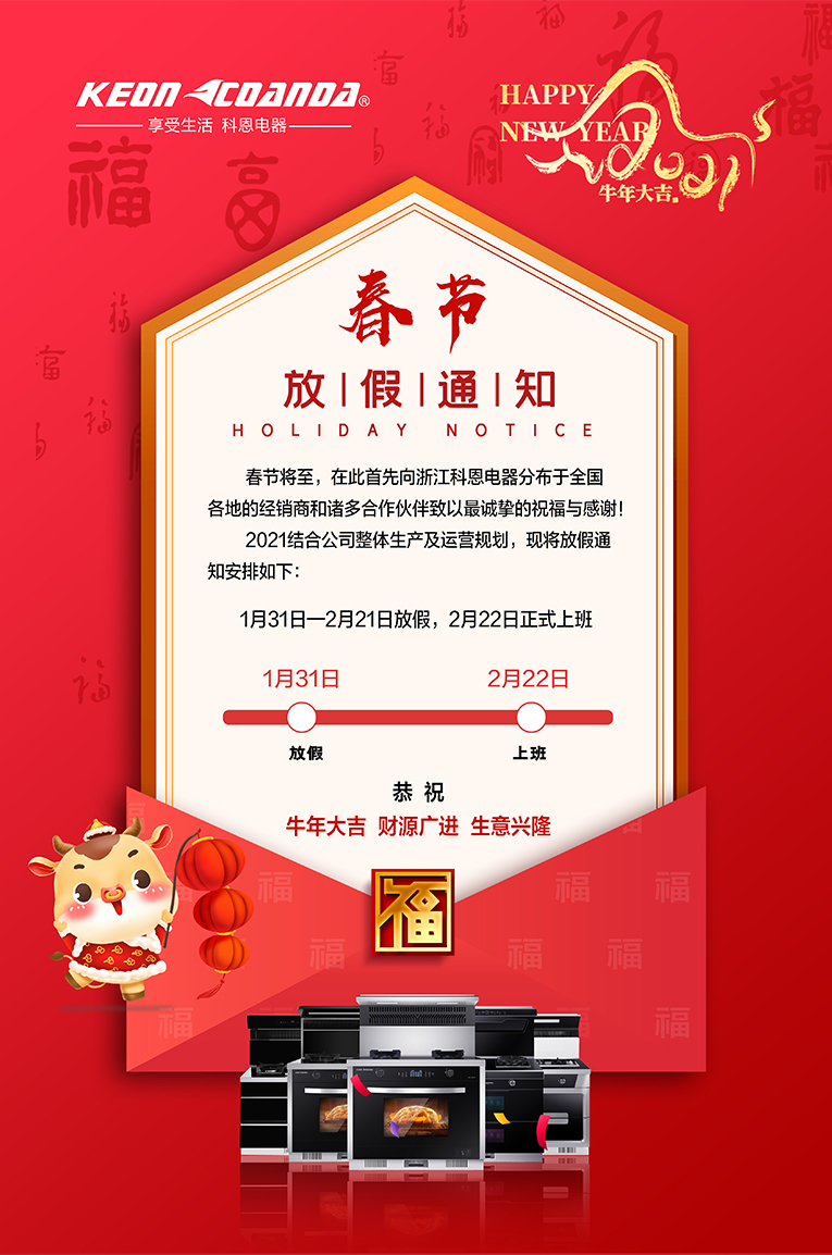 公司放假時(shí)間:2021年1月31日(農(nóng)歷臘月十九)到2021年2月21日(農(nóng)歷正月初十)