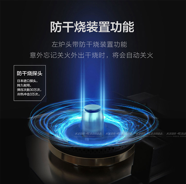 科恩猛火勁灶智能防干燒灶具KN610創(chuàng)新科技,在工藝、設(shè)計(jì)、選材上都非??季?,5.0KW大火力精控勁火,能在短時(shí)間內(nèi),激發(fā)食物深層營養(yǎng)分子,讓食材呈現(xiàn)出最佳的狀態(tài),尤其在爆炒上,能使食物味道更加鮮美,感受原汁原味的美食!另外,集成灶十大品牌、廚電行業(yè)十大品牌科恩KN610智能防干燒灶具擁有多重安全防護(hù),8MM厚黑晶防爆鋼化玻璃面板,易清潔、壽命更長;鑲嵌天合金防滑按鈕,工藝精湛、材質(zhì)細(xì)膩的同時(shí)還具有防升溫效果。KN610灶具最大安全防護(hù)在于左爐頭帶防干燒裝置功能,日本進(jìn)口探頭設(shè)計(jì),意外忘記關(guān)火外出干燒時(shí),將會自動關(guān)火,同時(shí)烹飪狀態(tài)下,溫控探頭檢測不到鍋具離鍋60S自動熄火,有效杜絕了安全隱患!