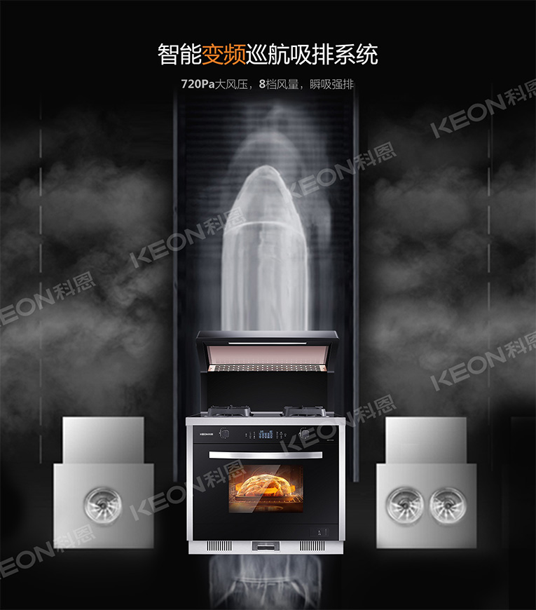 集成灶十大品牌、廚電行業(yè)十大品牌科恩集成灶采用變頻巡航增壓技術(shù),擁有21m3/min爆吸,在源頭上防止油升騰擴(kuò)散,強(qiáng)大的吸力將油煙完全排除,同時(shí)帶有煙機(jī)聯(lián)動(dòng)功能,打開燃?xì)庠罹湍芪哂蜔煟層蜔煙o(wú)處可逃,徹底吸排廚房油煙,讓女性不再忍受油煙困擾。