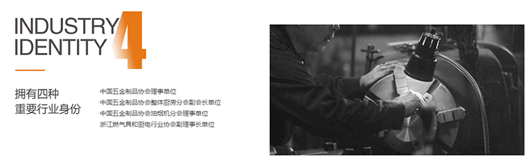 擁有行業(yè)中國(guó)五金制品協(xié)會(huì)理事單位、中國(guó)五金制品協(xié)會(huì)整體廚房分會(huì)副會(huì)長(zhǎng)單位、中國(guó)五金制品協(xié)會(huì)油煙機(jī)分會(huì)理事單位、浙江燃?xì)饩吆蛷N電行業(yè)協(xié)會(huì)副理事長(zhǎng)單位四種重要身份。