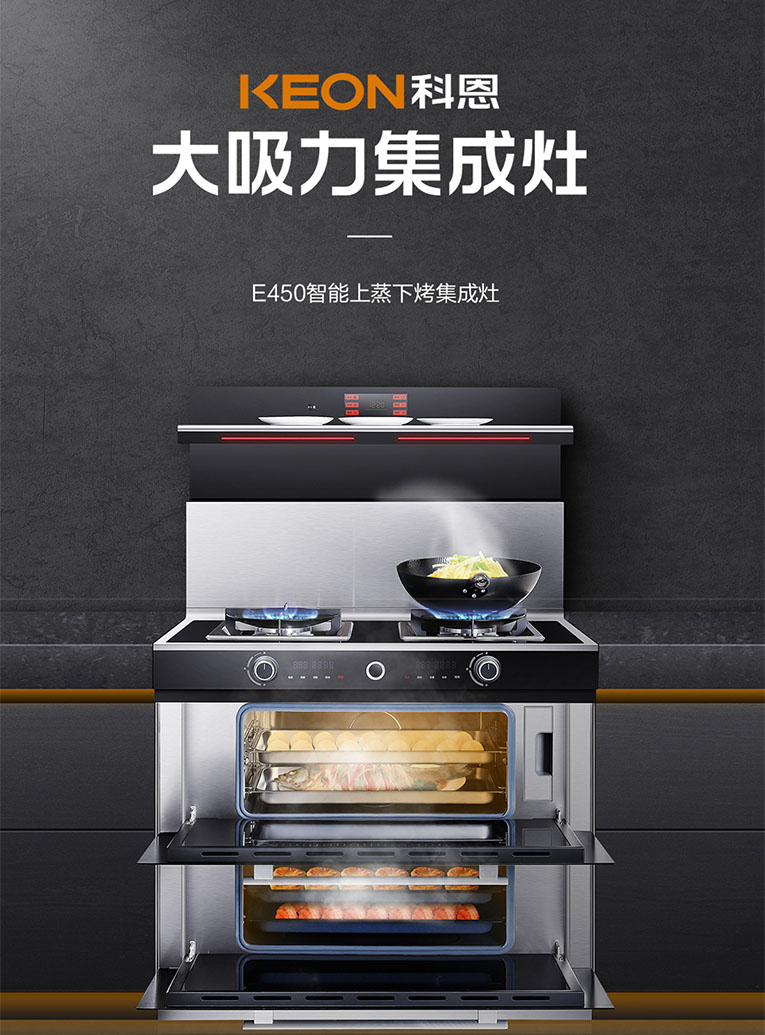 另外,科恩E450上下蒸烤集成灶還搭載智能語音控制,“你好小科”輕松掌控集成灶,大吸力無油煙,能蒸善烤美味雙收,一次性給你滿漢全席。這個冬天,安排一下集成灶十大品牌、廚電行業(yè)十大品牌科恩E450上下蒸烤集成灶,解放雙手,暖心又暖胃!