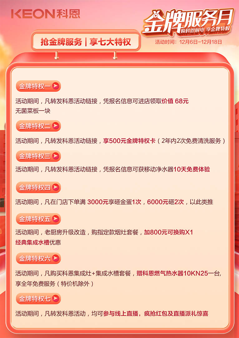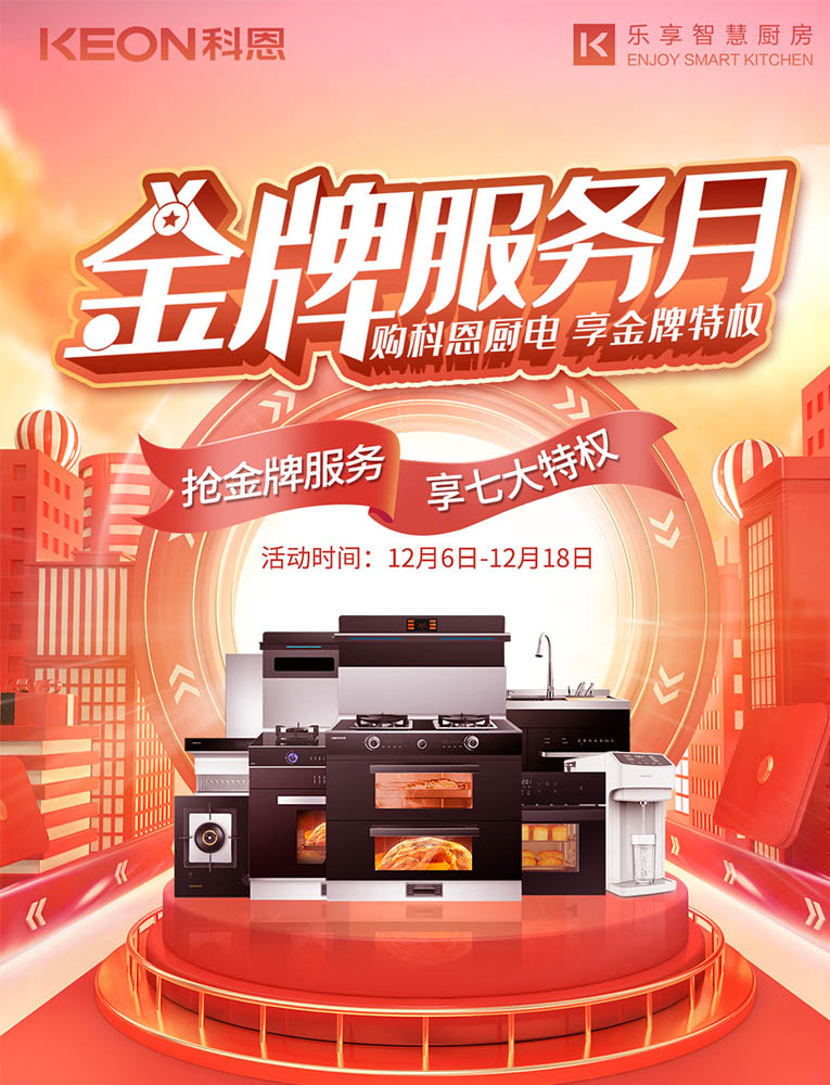 購(gòu)科恩廚電,享金牌特權(quán)!十大品牌科恩集成灶金牌服務(wù)月火熱來(lái)襲!