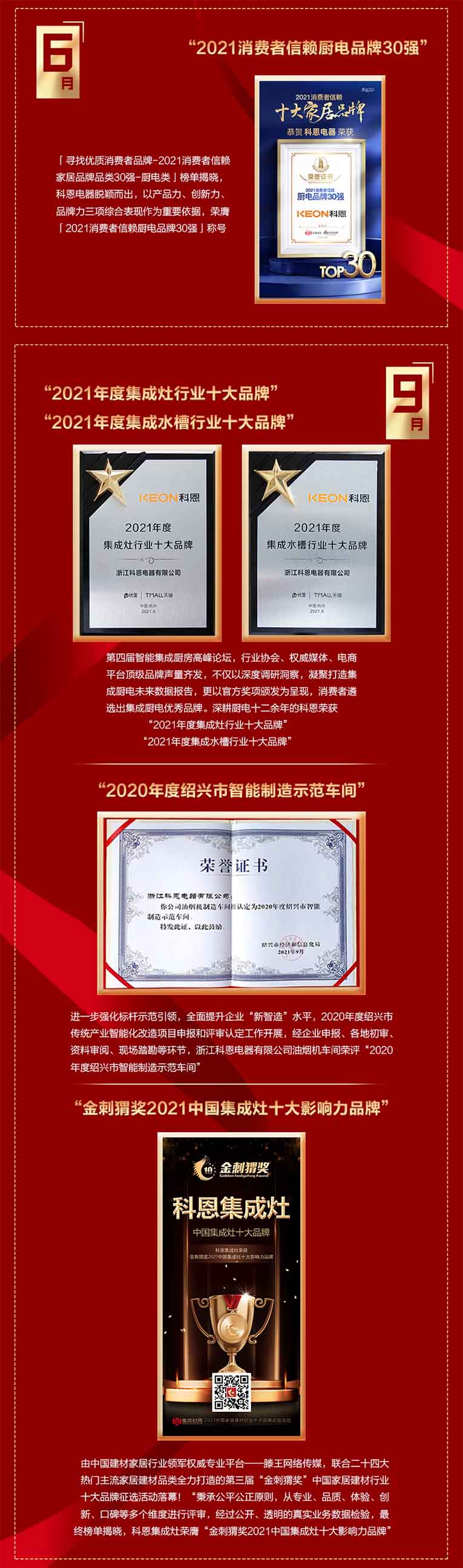 樂(lè)享智慧廚房,有著這些榮譽(yù)背書,科恩集成灶品質(zhì)更值得用戶信賴,而科恩也會(huì)這些信賴轉(zhuǎn)化為動(dòng)力,不斷研發(fā)、制造出更優(yōu)秀的產(chǎn)品。
