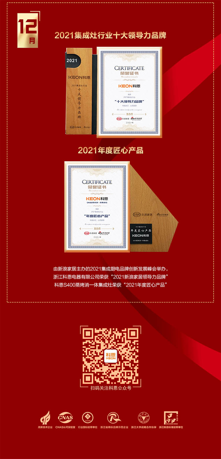 集成灶已成為廚電行業(yè)的明星產(chǎn)品,其高速的市場(chǎng)增長(zhǎng)率和極高的好評(píng)度,不僅展現(xiàn)了其本身性能的卓著,而且顯示出集成廚電行業(yè)明朗開(kāi)闊的前景,科恩集成灶奮勇前行,憑借強(qiáng)大的企業(yè)實(shí)力、雄厚的技術(shù)支持、可靠的售后服務(wù),成為了眾多消費(fèi)者的首選,2021年是科恩集成灶飛速發(fā)展的一年。這一年,科恩“五新戰(zhàn)略”發(fā)布、這一年,斥資800萬(wàn)全國(guó)高鐵冠名、這一年,科恩斬獲眾多榮譽(yù)。