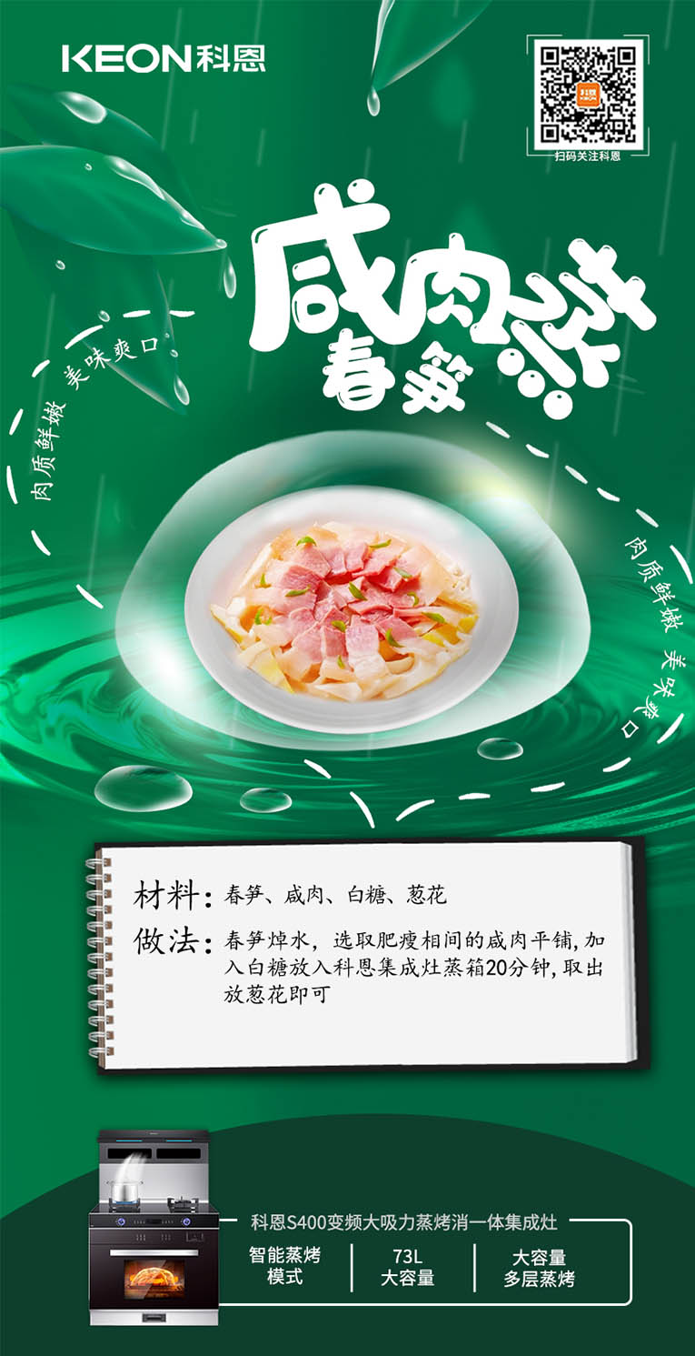 中醫(yī)認(rèn)為肝主生發(fā),故春季肝氣旺盛,肝木易克脾土,養(yǎng)生不當(dāng)容易損傷脾臟,從而導(dǎo)致脾胃功能的下降。雨水時(shí)節(jié)空氣濕潤(rùn),又不燥熱,正是養(yǎng)生的好時(shí)機(jī),當(dāng)然首先要調(diào)養(yǎng)脾胃。集成灶十大品牌、廚電行業(yè)十大品牌科恩集成灶多項(xiàng)全能,蒸煮、煲湯、煎炸、爆炒樣樣精通,輕松應(yīng)對(duì)您所需的烹飪方式,20m3/min大風(fēng)量,720Pa大風(fēng)壓,只留美味,不留油煙。