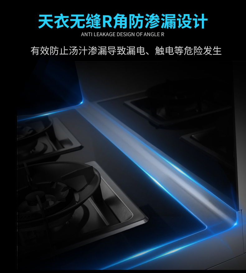 黑晶防爆鋼化玻璃灶臺面板,硬度高,韌性強(qiáng),外觀時(shí)尚動(dòng)感,搭配天衣無縫R角防滲漏設(shè)計(jì),不僅易清潔易打理,更能有效防止湯汁滲漏導(dǎo)致的漏電、觸電等危險(xiǎn)發(fā)生。