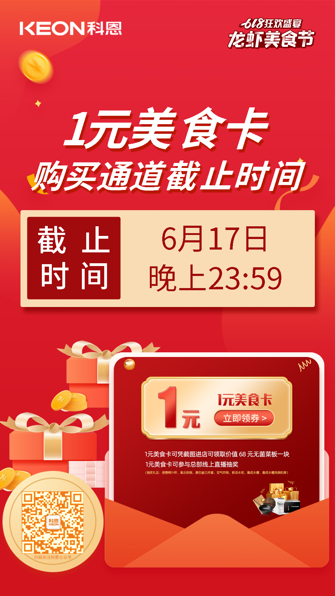 注意!注意!注意!科恩集成灶618狂歡盛宴——龍蝦美食節(jié)將于6月18日14點(diǎn)直播大抽獎(jiǎng)后落下帷幕,1元美食特權(quán)專屬卡權(quán)購(gòu)買通道也將于今晚(6月17日)23:59準(zhǔn)時(shí)關(guān)閉!薅羊毛福利即將進(jìn)入倒計(jì)時(shí)!還沒(méi)有購(gòu)買一元特權(quán)卡的朋友們要抓緊時(shí)間了!話不多說(shuō),最后一次薅羊毛安利,拿走不謝!