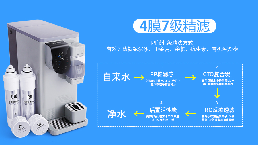 采用大品牌美國(guó)陶氏進(jìn)口RO反滲透膜,過濾精度<0.0001微米,相當(dāng)于1/20萬的頭發(fā)絲,四膜七級(jí)精濾,有效去除水中的鐵銹泥沙、重金屬、余氯、抗生素、有機(jī)污染物等有害物質(zhì),內(nèi)置的UV殺菌系統(tǒng),可有效防止凈水箱的二次污染,凈水直飲更安心!咱住的雖然是老小區(qū),但用的水呀,比誰都不差!