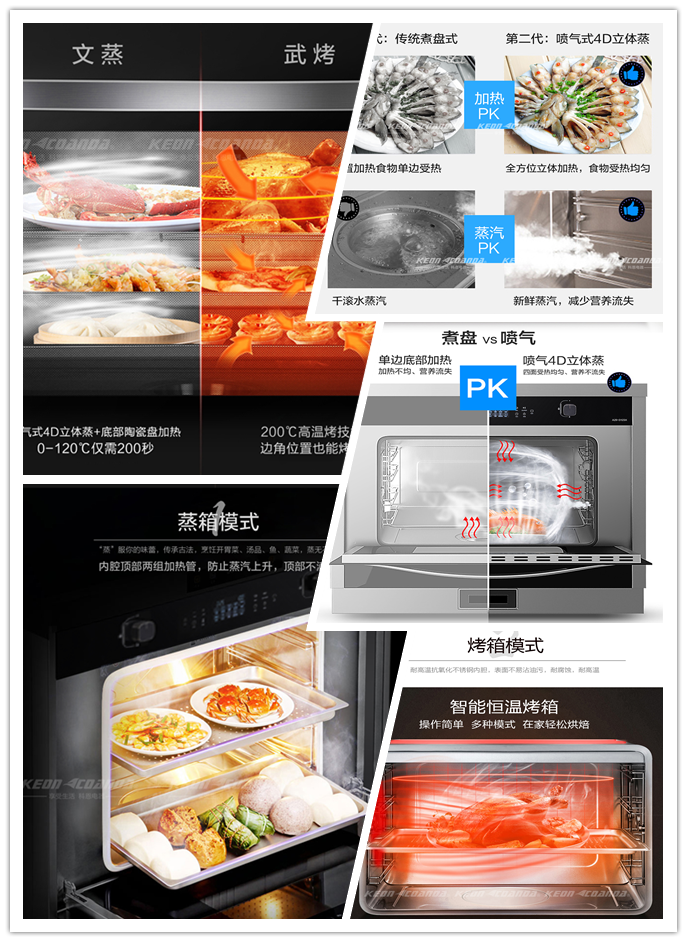 與此同時(shí),科恩集成灶采用側(cè)吸下排的方式,嚴(yán)格把握10-20cm黃金攏煙區(qū),吸力直逼煙源,截?cái)嘤蜔熉窂?,?nèi)置直流變頻電機(jī),油煙吸盡系統(tǒng),提供澎湃動(dòng)力,爆吸技術(shù)高達(dá)21m3/min,吸煙能力更強(qiáng),煮婦(夫)們?cè)僖膊挥锰焯旌陀蜔煛皯?zhàn)斗”。更值得一提的是,科恩集成灶實(shí)用性特別強(qiáng),如科恩智能蒸烤消一體集成灶擁有62L黃金容量空間,四層蒸烤架設(shè)計(jì),一次可蒸制一桌菜,多種蒸烤模式隨心選擇,甜品、點(diǎn)心、烤雞等美食想吃就吃??贫髦悄苷艨鞠惑w集成灶采用4D立體直噴蒸烤模式,更能精準(zhǔn)控溫,蒸汽動(dòng)態(tài)平衡技術(shù)保證多種食材同時(shí)烹飪不串味,外置隱藏式水箱,輕輕一按即可自動(dòng)彈出,加水更方便省心,有了TA煮婦(夫)們做飯不再手忙腳亂,輕松烹飪一桌大餐!