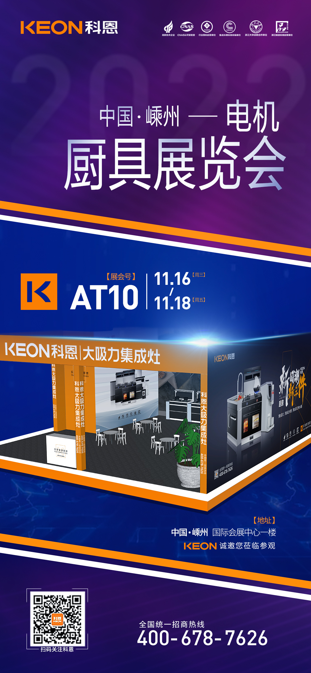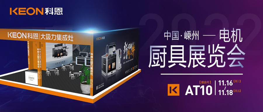 2022年11月16日-18日,第十五屆中國(guó)(嵊州)電機(jī) ·廚具展覽會(huì)將在中國(guó)廚具之都——嵊州隆重開(kāi)幕,科恩集成灶作為廚電行業(yè)領(lǐng)軍品牌受邀參加本次展會(huì)(展會(huì)號(hào):AT10)