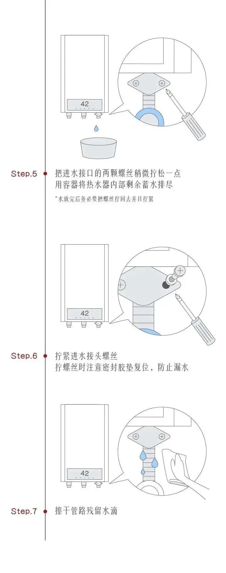 寒冬已至!當(dāng)室外溫度低于0℃時(shí),使用完熱水器后,若不及時(shí)將熱水器里的水排干凈,冷空氣變會(huì)倒灌進(jìn)熱水器內(nèi)部,水結(jié)冰后體積膨脹,容易凍壞熱水器水箱,造成不必要的麻煩和損失!因此,做好熱水器的防凍措施非常有必要!關(guān)于熱水器會(huì)被凍裂這件事,可能很多人都不會(huì)在意,為了讓大家能更好的了解熱水器如何防凍,這份防凍指南,你必須get!