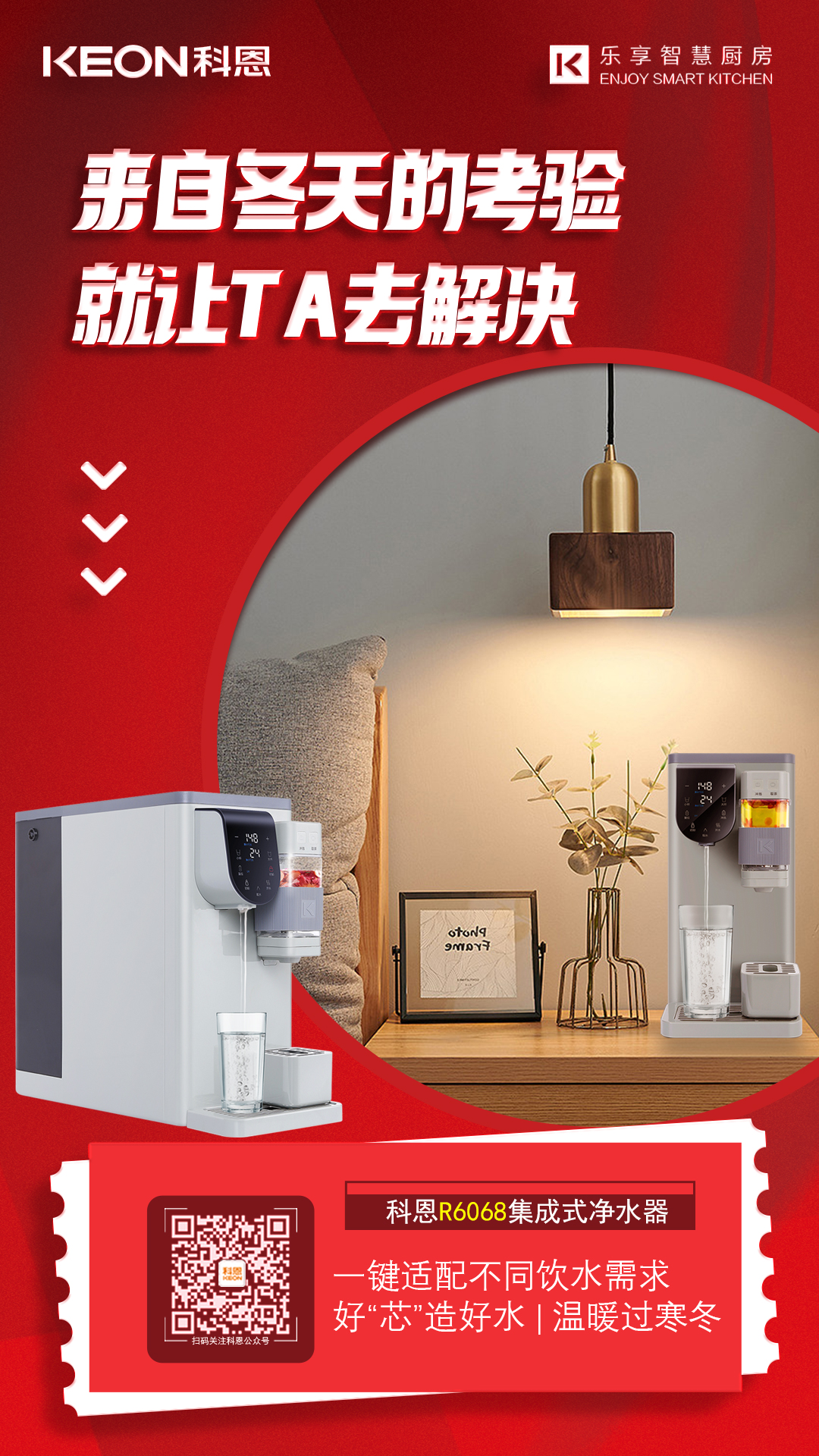 科恩集成式凈水器,RO精濾,UV殺菌,集凈飲加熱于一體,采用即熱和智能溫控技術(shù),實(shí)現(xiàn)快速制熱,無極控溫,水量可調(diào),滿足不同人群的用水需求,無論是老爸的一壺茶、親友的咖啡、果茶、寶寶的沖奶水,一應(yīng)俱全,讓全家人在這個冬天隨時喝上安全健康水,暖胃更暖心。