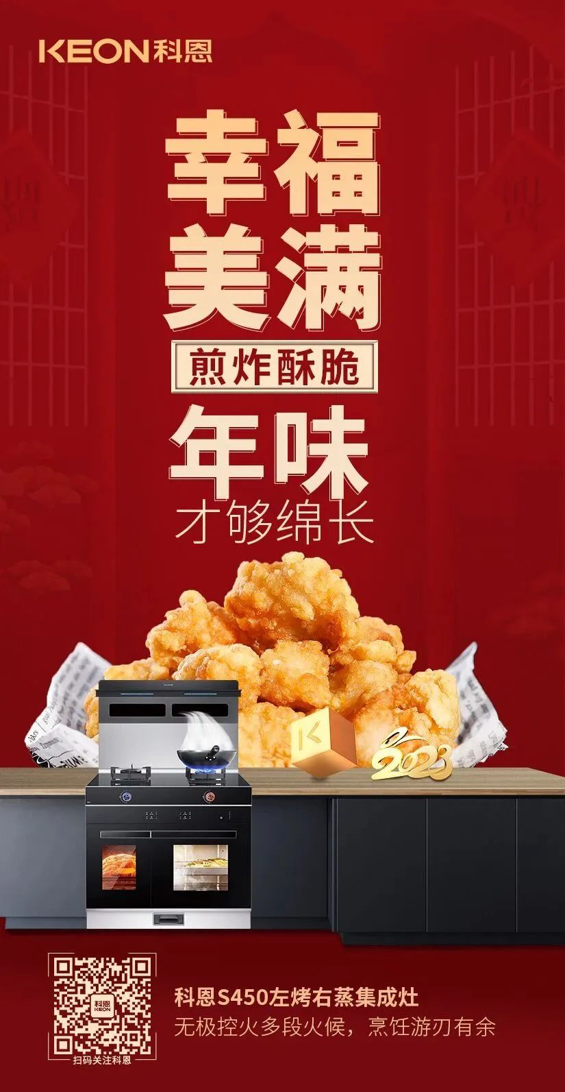 除夕,歲末的最后一天夜晚。在這辭舊迎新的團(tuán)圓之夜,一定要有一頓闔家歡樂,其樂融融圍坐一席的團(tuán)圓年夜飯才算圓滿,TA是每年新年前的重頭戲,不但豐富多彩,而且還講究很多寓意,今夜,科恩集成灶為您和家人奉上一桌寓意滿滿的年夜飯,祝您和家人在新的一年瑞兔呈祥,兔來運(yùn)轉(zhuǎn),兔年大吉,好運(yùn)連連!