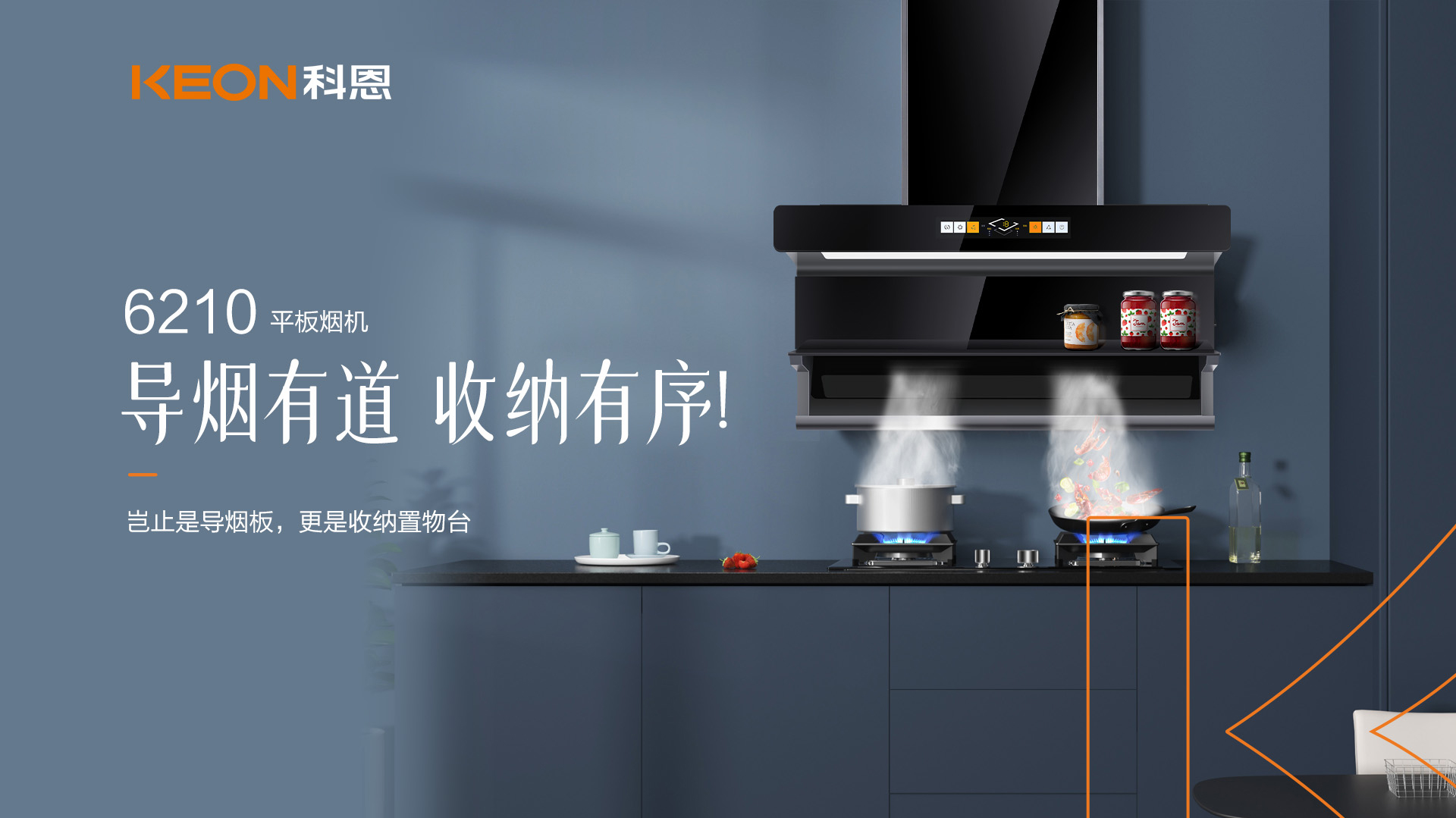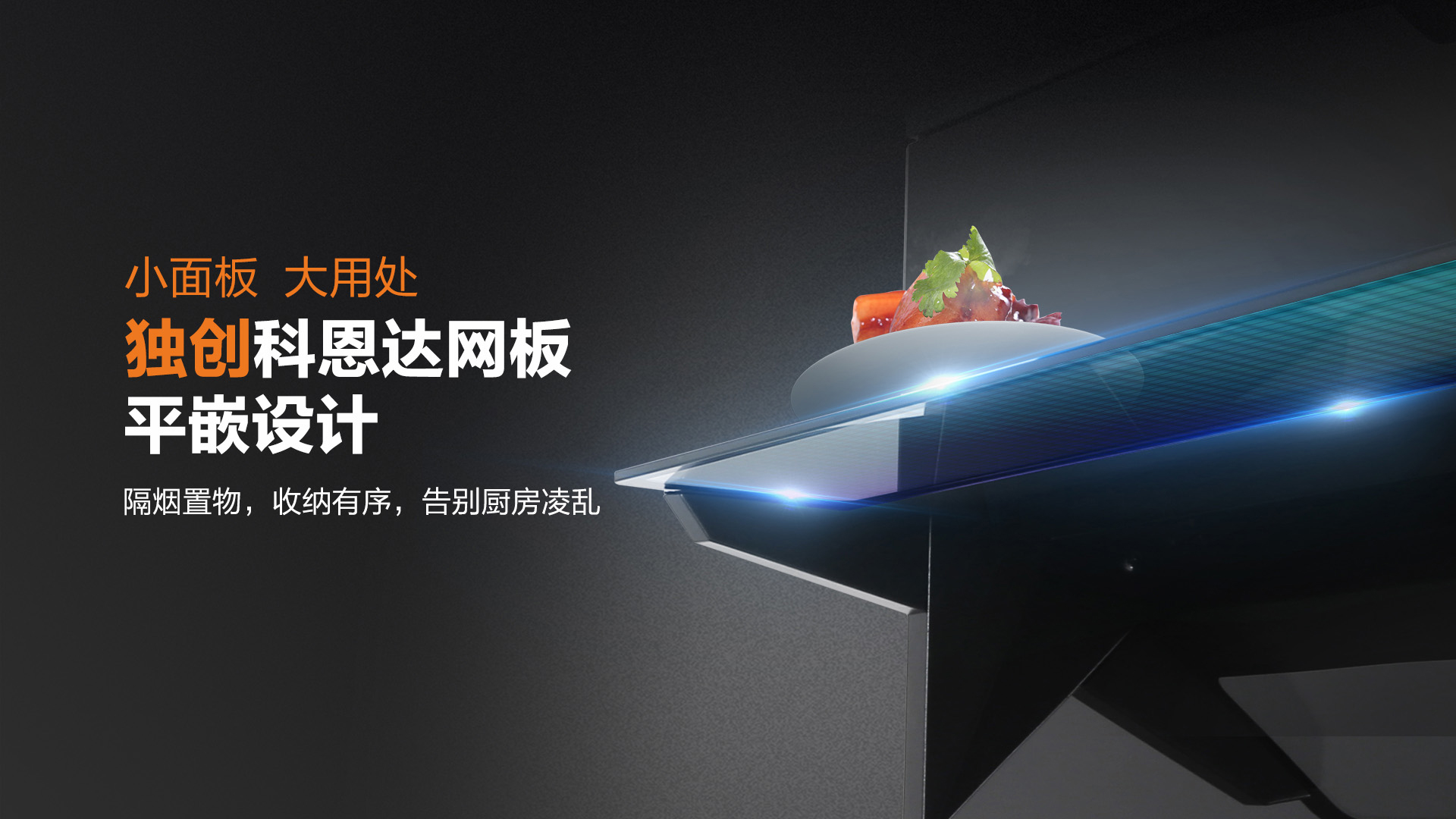 特制的導(dǎo)煙置物板,更是阻絕油煙向上跑的可能,徹底做到油煙不過臉。且在導(dǎo)煙同時(shí),還能置物,烹飪時(shí)隨手置放的調(diào)味品有了好去處!