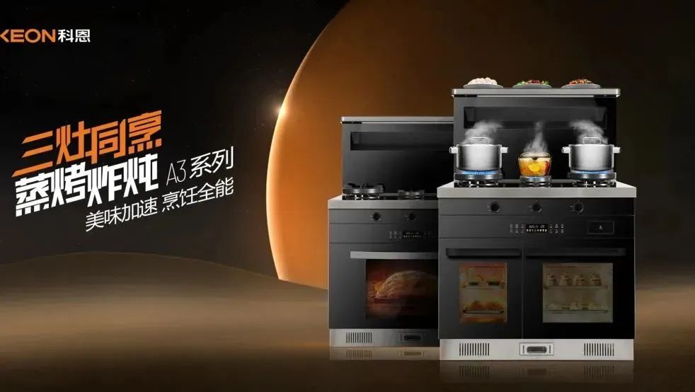 隨著90后邁入社會中堅力量,開啟三代同堂的溫情生活,對烹飪的需求也逐步改變??焖?、智能、安全成為家庭廚房烹飪準(zhǔn)則??贫?/span>A3系列完美適配新一代廚房烹飪需求,三灶同烹的設(shè)計可實現(xiàn)開一次火完成三菜一湯,讓烹飪更快速便捷。同時,蒸烤炸燉一體的設(shè)計不僅節(jié)約了廚房空間,更大幅度的減少了烹飪時間??贫?/span>A3系列讓每個家庭樂享智慧廚房。