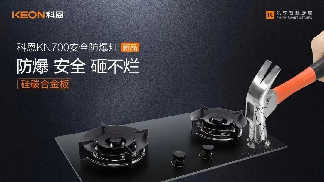 燃?xì)庠畋ㄊ鹿暑l頻發(fā)生,究其根本就是因為防爆不過關(guān)。玻璃鋼化一般標(biāo)準(zhǔn)在700度(鋼化溫度)以上,也就是說拿1.8公斤重的重物高度下自由落體,這個玻璃不能碎裂,這才算是合格的鋼化玻璃。但即使達(dá)到國家標(biāo)準(zhǔn)的鋼化玻璃面板也存在3‰的自爆率??贫鹘饎偡辣畹恼Q生正是為了解決這個難題。科恩采用了超細(xì)晶、高均質(zhì)新型硅碳合金板!更堅可不摧 ,可耐高溫1500℃!真正做到防爆、安全、砸不爛!無懼各種極限考驗!