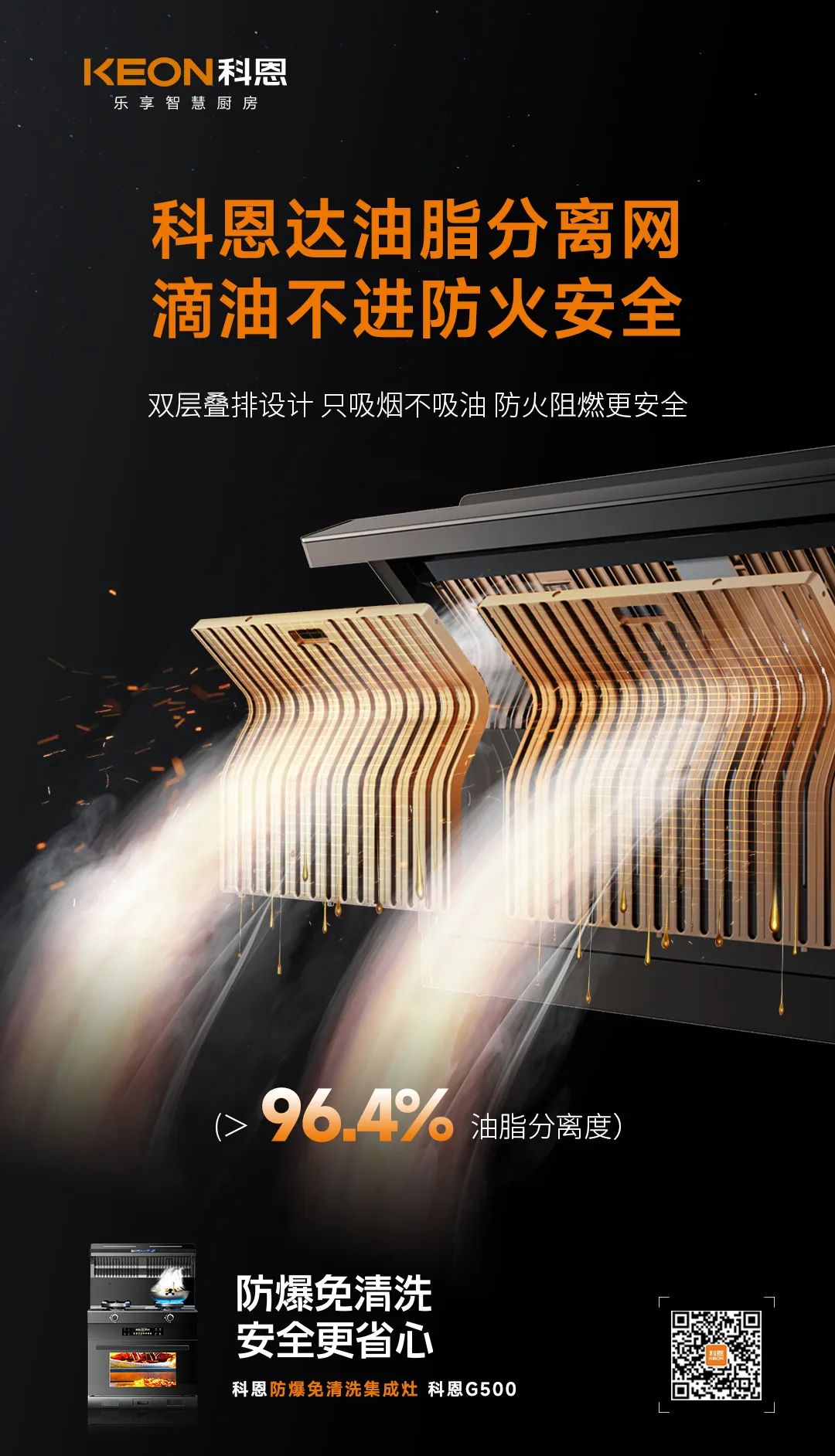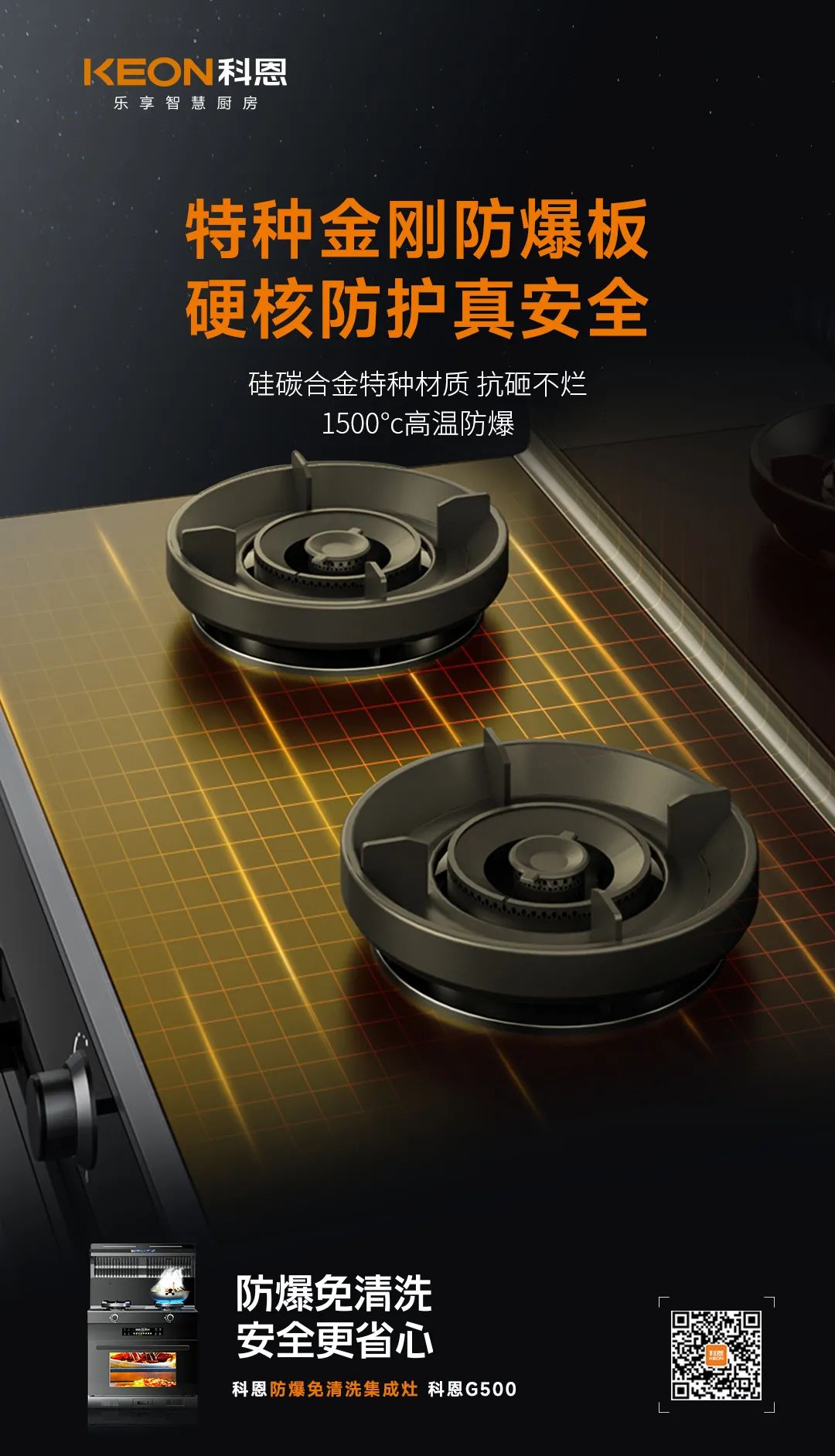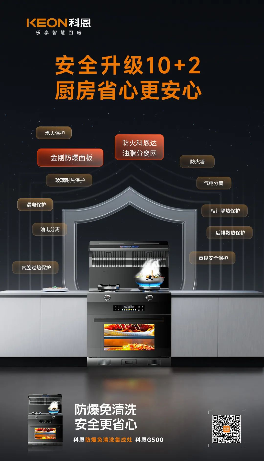 從用戶實(shí)際需求出發(fā),2023年科恩將近70%的用戶最為看重的安全、易清潔作為研發(fā)重點(diǎn)方向,研發(fā)了G系列防爆免清洗集成灶。經(jīng)過漫長(zhǎng)的上市前檢測(cè)、測(cè)試等待,科恩G500防爆免清洗集成灶于昨日,隆重上市。