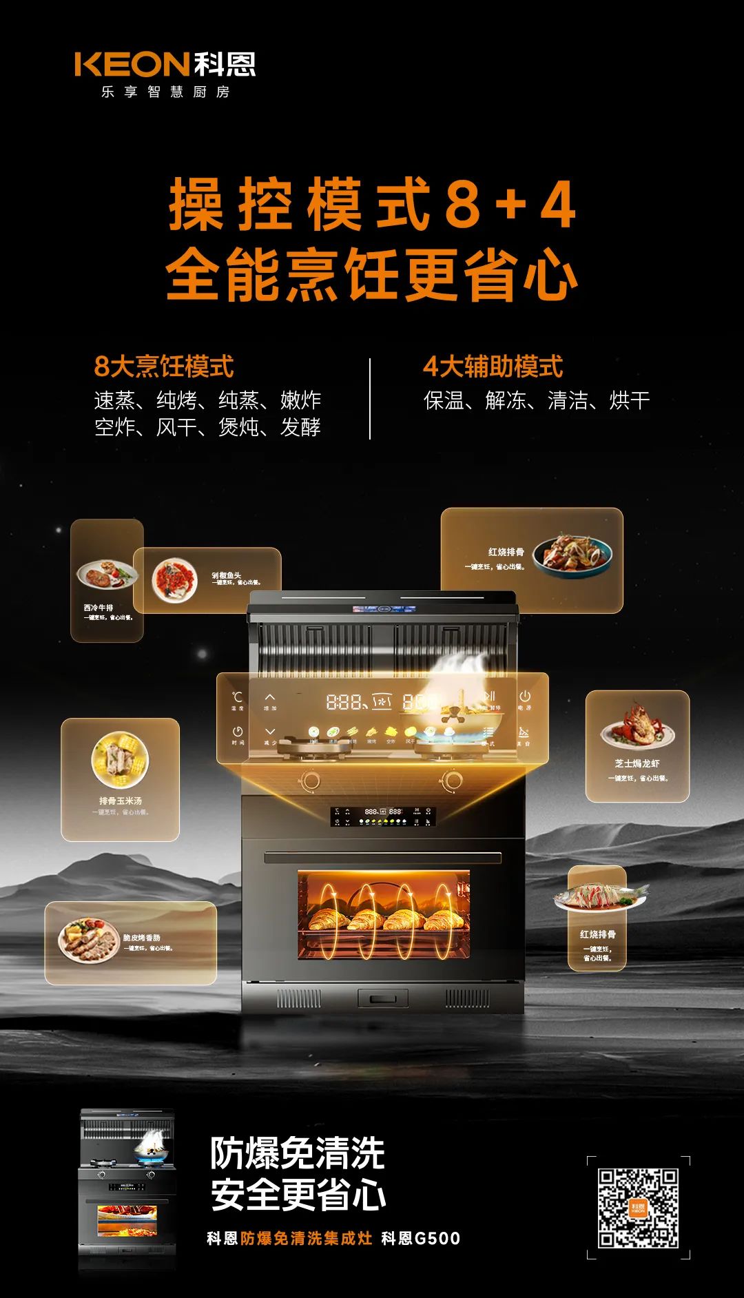 科恩G500的上市將再一次對(duì)廚電市場(chǎng)布局,重新洗牌。全新血液刺激,將推動(dòng)廚電行業(yè)帶來全新發(fā)展,為用戶提供更多選擇。