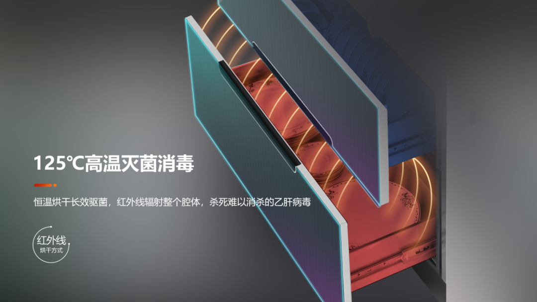 科恩C260L配有120L大容量消毒柜,采用臭氧與紫外線雙重消毒,125℃雙管高溫消毒,360°循環(huán)發(fā)熱殺菌更徹底,高溫蒸發(fā)腔內(nèi)水分,防止細(xì)菌滋生。可持續(xù)15分鐘,125℃高溫滅菌消毒,紅外線輻射整個(gè)腔體,殺死難以消殺的乙肝病毒。真正母嬰級(jí)消毒柜,讓媽媽更放心。
