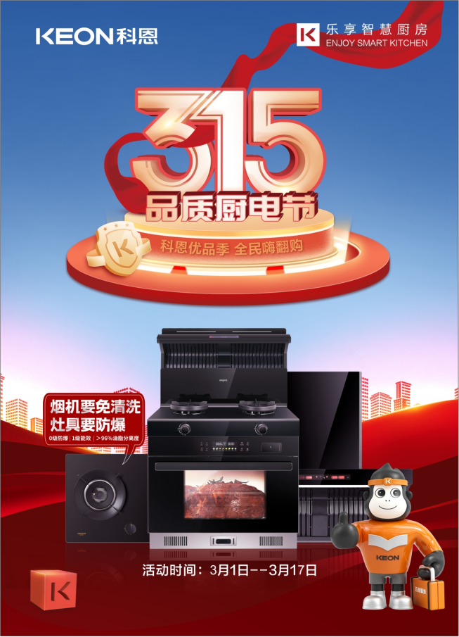 科恩“315品質(zhì)廚電節(jié)”正在火熱進(jìn)行中,全國千城萬店齊獻(xiàn)7重好禮,只為帶給您全新高品質(zhì)廚房生活。