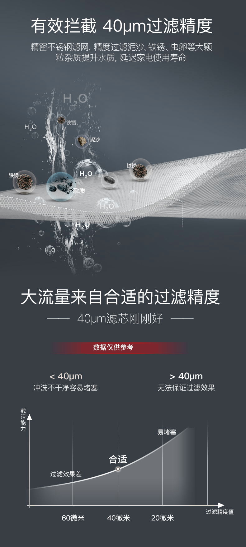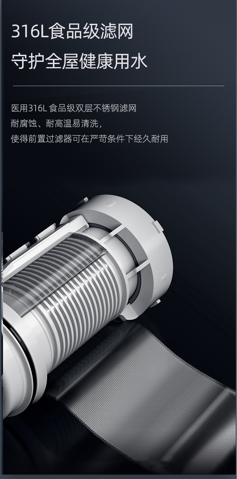 同時(shí),Q30采用40um過(guò)濾精度,精密不銹鋼濾網(wǎng),精度過(guò)濾泥沙、鐵銹、蟲(chóng)卵等大顆粒雜質(zhì),提升水質(zhì),延長(zhǎng)家電使用壽命,完美解決新小區(qū)洗衣機(jī)進(jìn)砂石的煩惱。