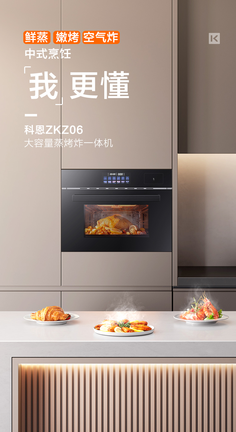 其次,科恩ZKZ06嵌入式蒸烤一體機除了傳統(tǒng)的蒸煮和烘焙功能外,還兼具空氣炸、保潔、烘干等功能,極大地方便了用戶的日常生活。這也意味著,用戶不再需要購買其他種類繁多的小家電,從而節(jié)省了大量的空間資源,提高了生活效率。