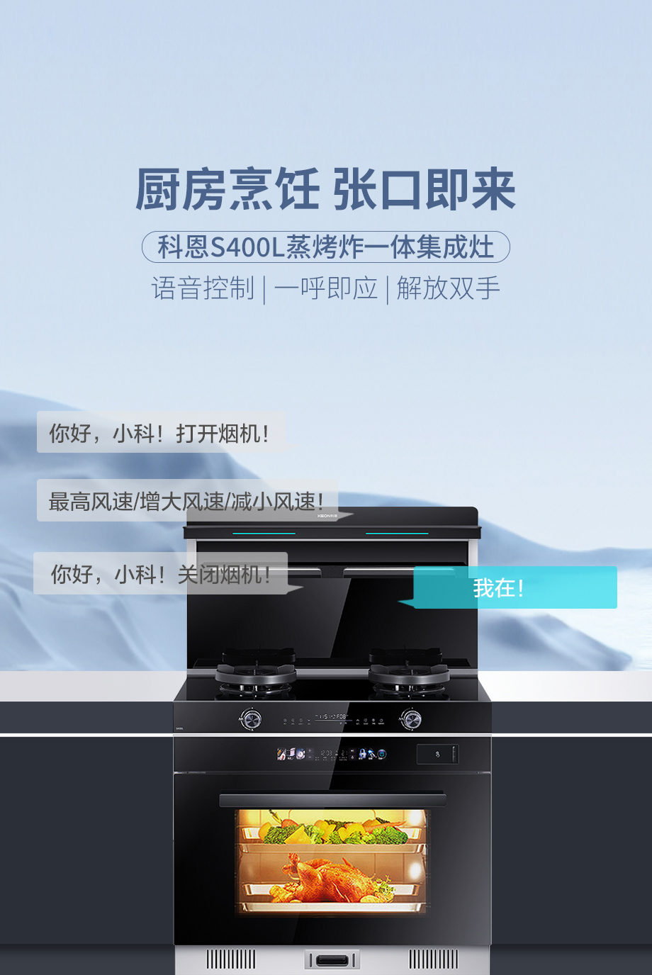 廚房烹飪,張口即來!一句你好小科開啟一天烹飪生活!S400L內(nèi)置語音控制一呼即應(yīng),真正解放雙手。