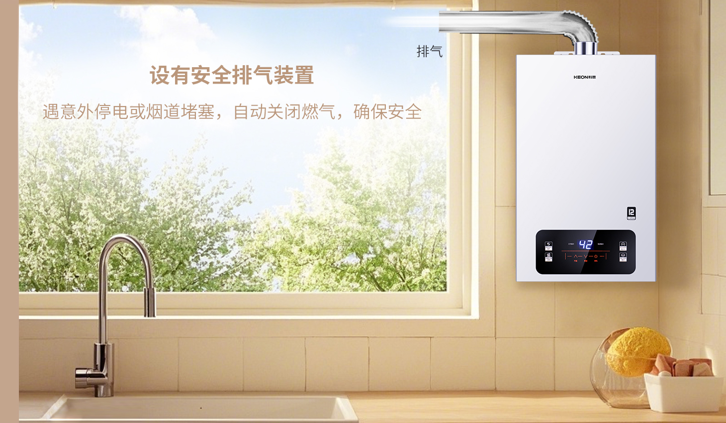 13重防護(hù),安全護(hù)航。堡壘式安全設(shè)計(jì),隱患清零,停電煙道堵塞自動(dòng)斷燃,防護(hù)升級(jí),12KN67燃?xì)鉄崴?,周全守護(hù),定時(shí)關(guān)機(jī)+通風(fēng)提醒,科恩12KN67燃?xì)鉄崴?/span>,安心沐浴。