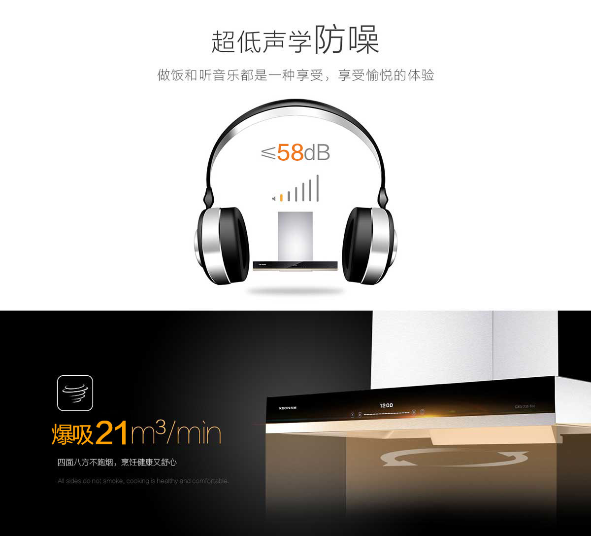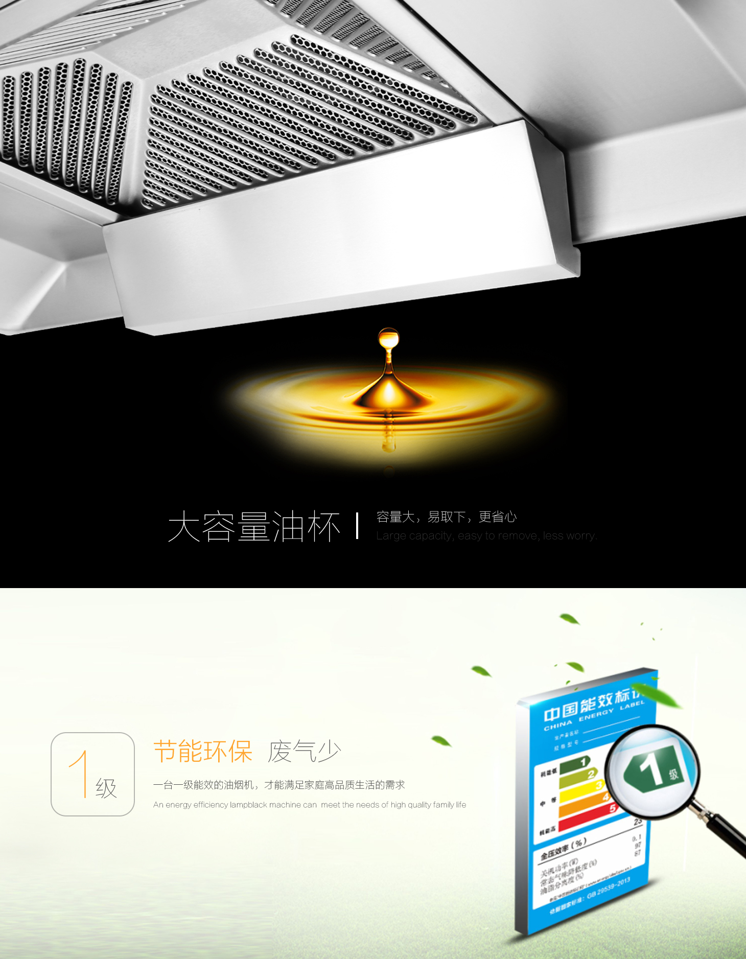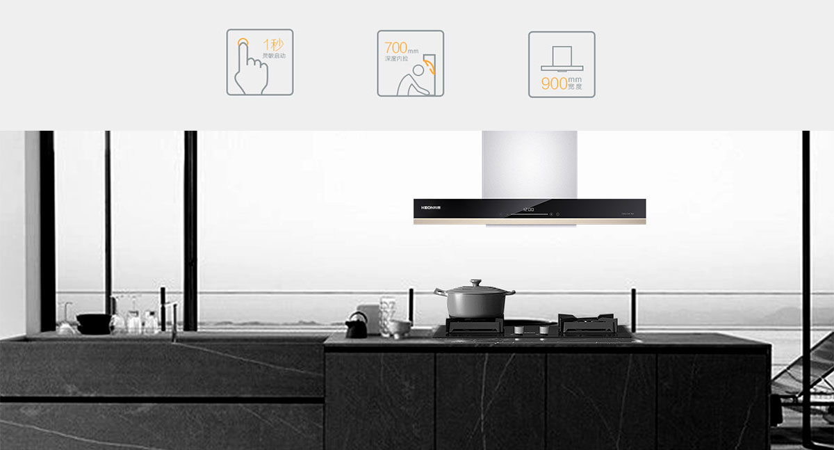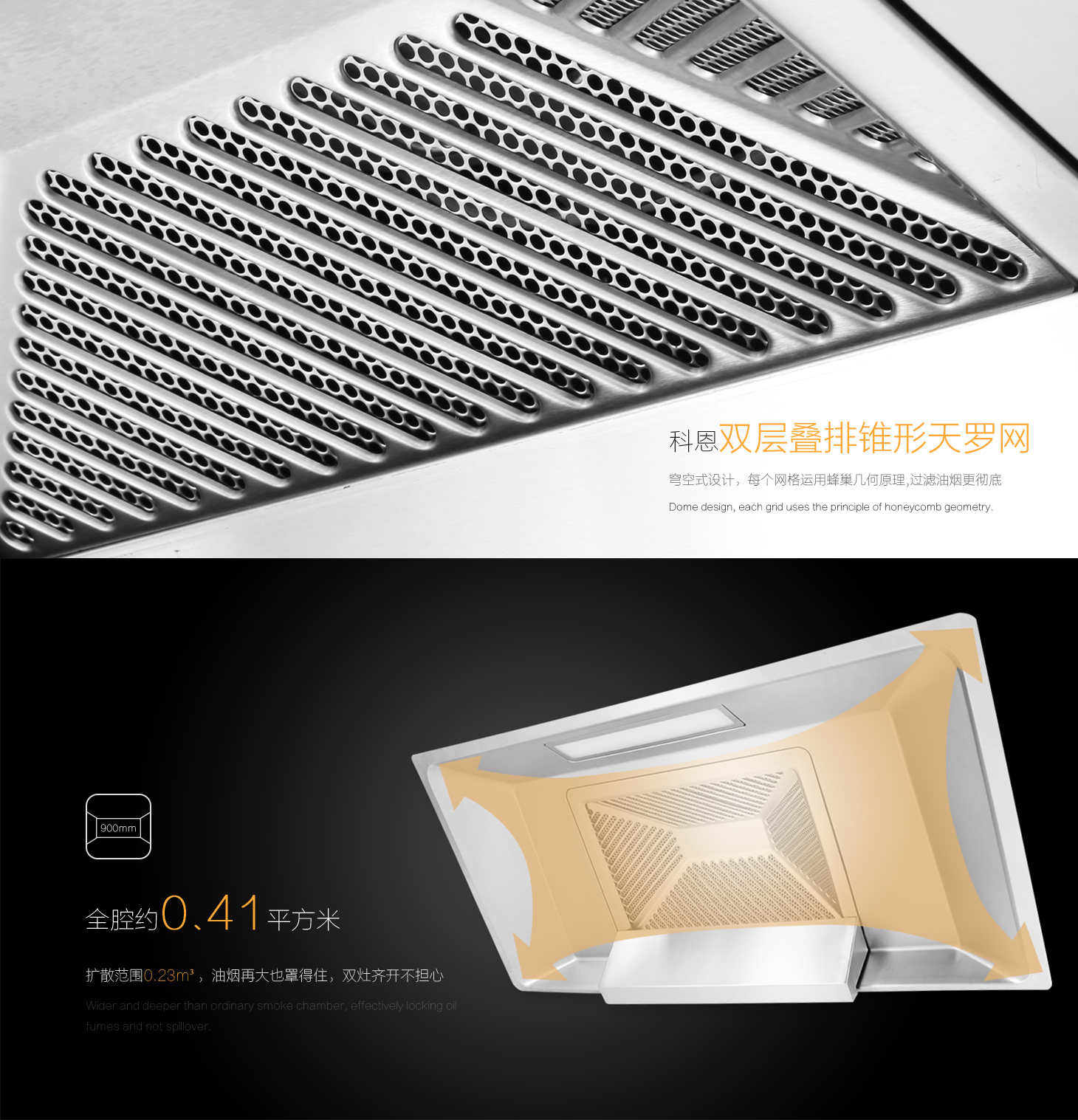 - 全腔900MM攏煙區(qū),比普通煙腔更寬更深,有效鎖住油煙不外溢。