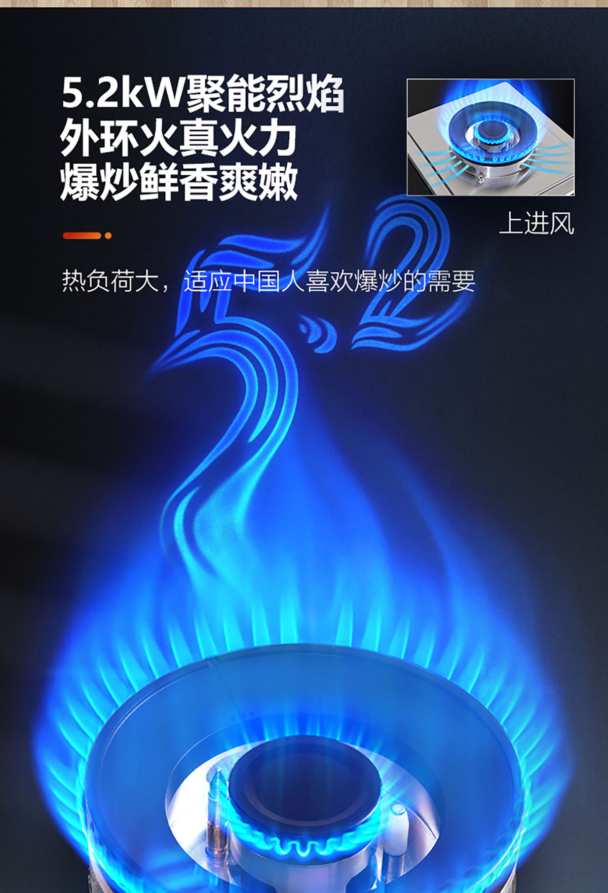 • 熱負(fù)荷大,適應(yīng)中國人喜歡爆炒的需要