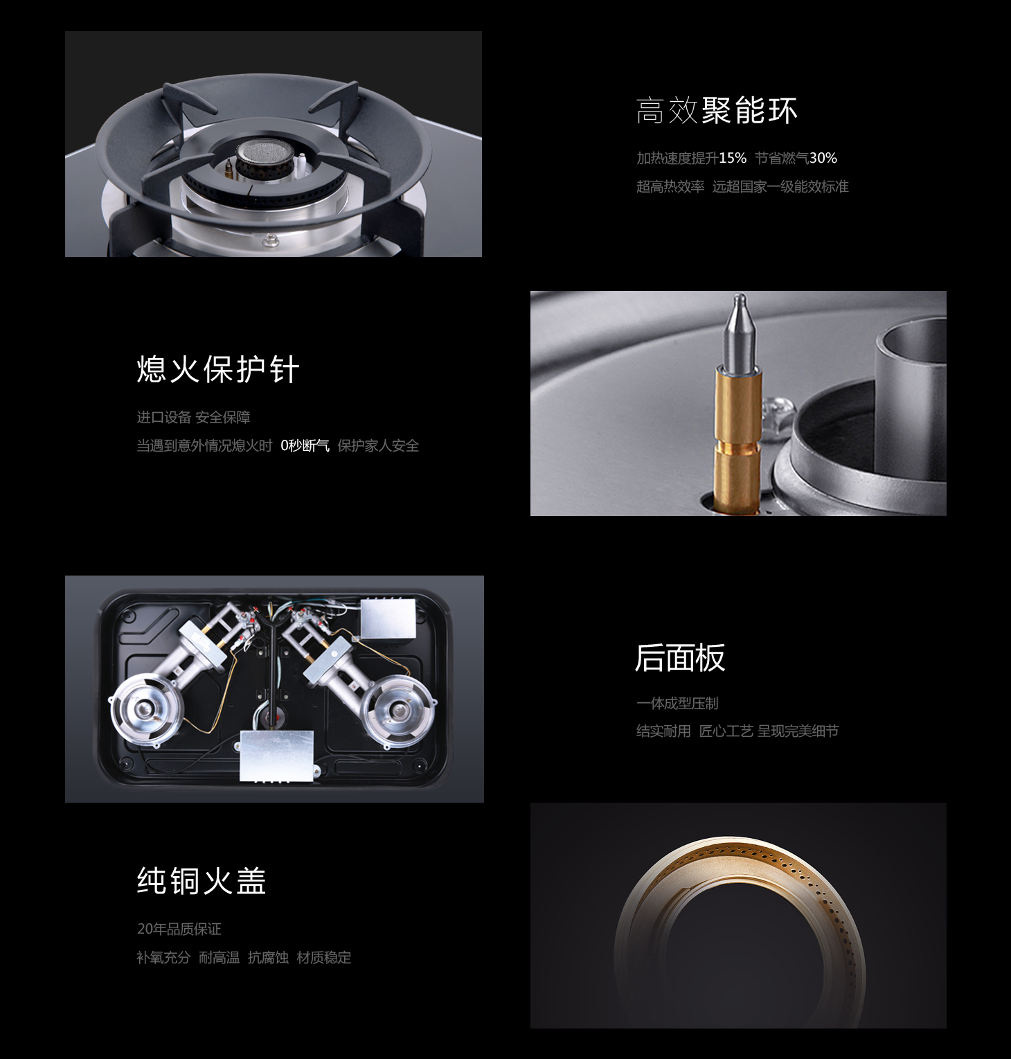 - 銅火蓋帶高熱效鑄鐵聚能環(huán),熱效率高