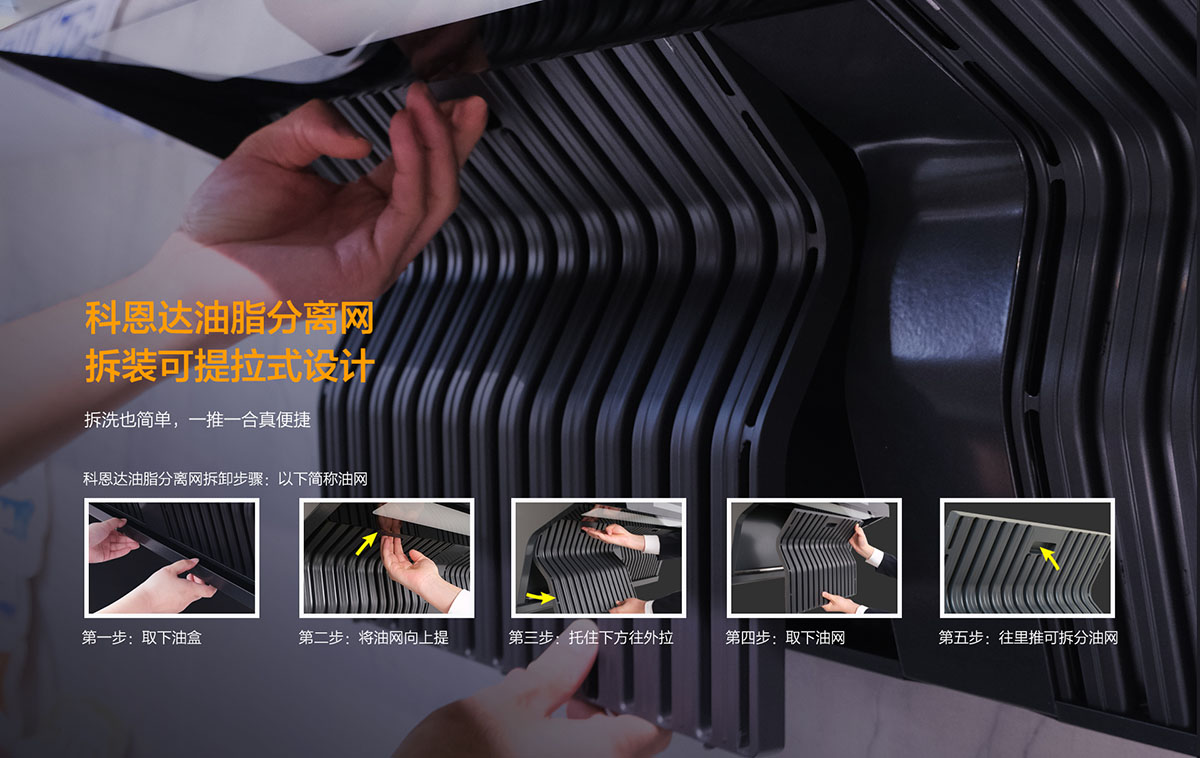 - 科恩達油脂分離網拆裝可提拉式設計,拆洗也簡單,一推一合真便捷