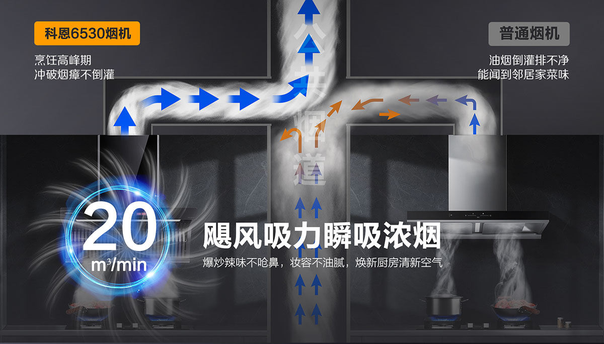 - 20m3/min颶風吸力,爆炒不嗆鼻,煥新廚房更潔凈