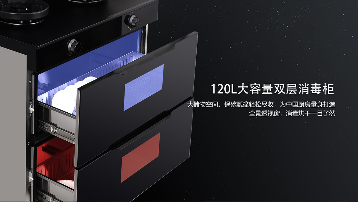 - 大容量雙層消毒柜,為中國廚房量身打造