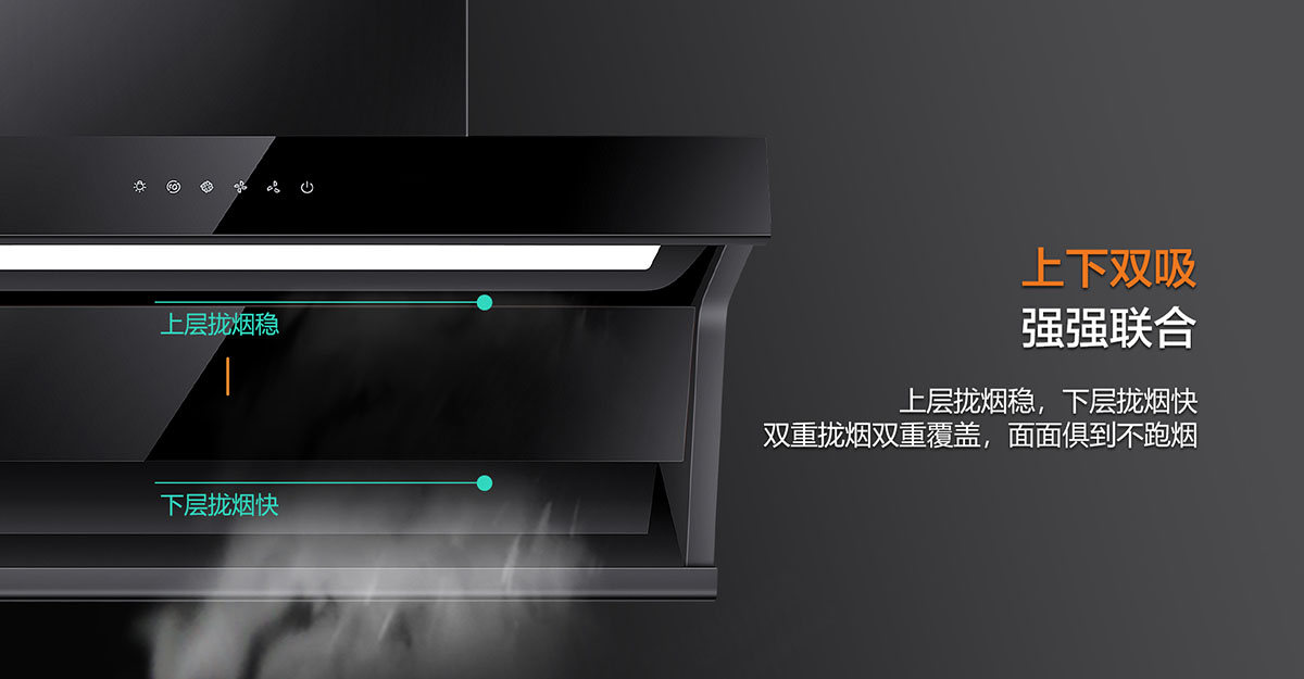 - 上下雙吸,下強吸,上快攏,強強聯(lián)合,油煙0逃逸