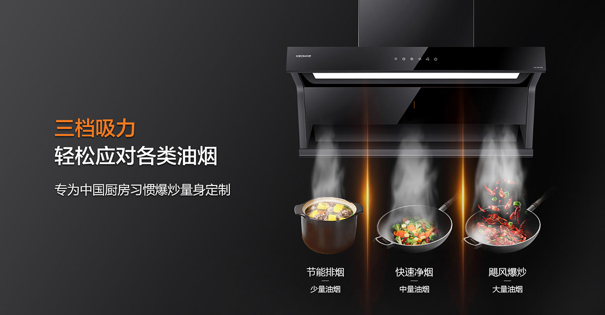 - 1分鐘延時功能,烹后自動排凈殘留余煙