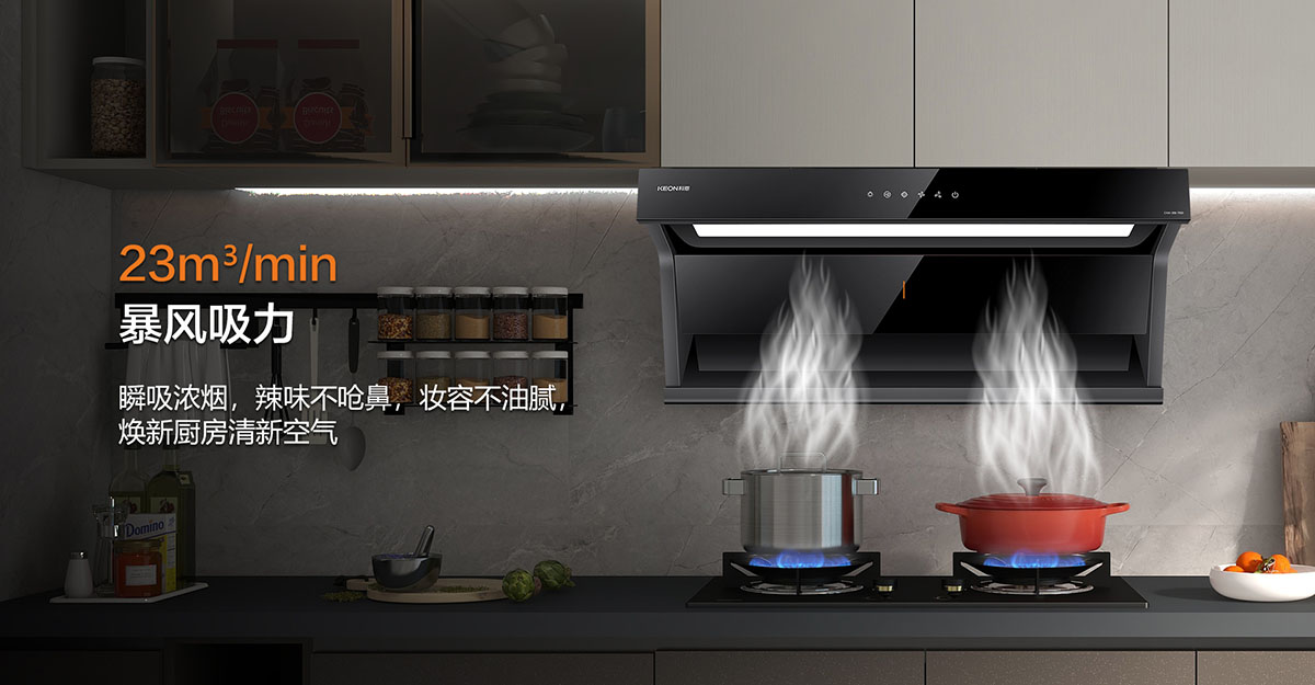 - 23m³/min颶風吸力,搶排強排,爆炒辣味不嗆鼻