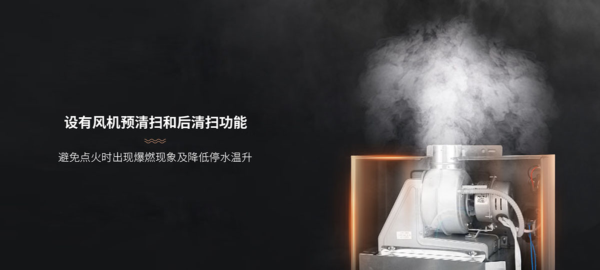 - 設(shè)有⻛機(jī)預(yù)清掃和后清掃功能,避免點(diǎn)⽕時(shí)出現(xiàn)爆燃現(xiàn)象及降低停⽔溫升