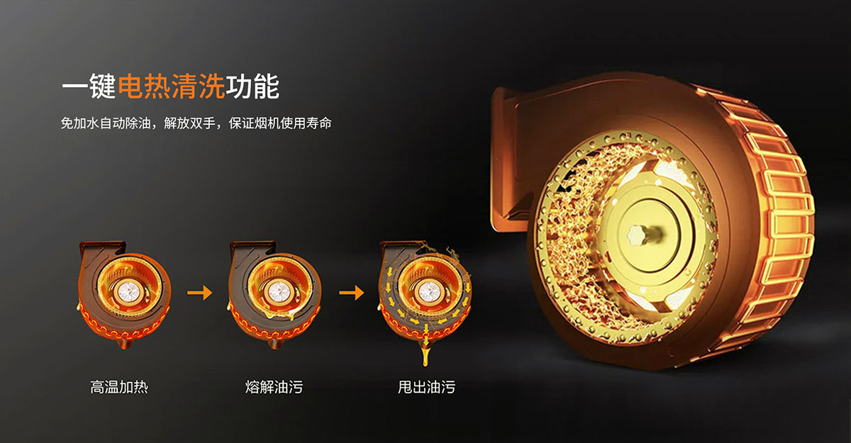 - 一鍵電熱清洗功能,解放雙手,保證煙機(jī)使用壽命