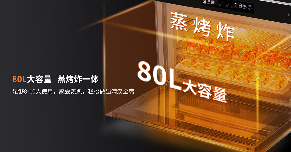 - 80L大容量,蒸烤炸一體,足夠8-10人使用,輕松做出滿漢全席