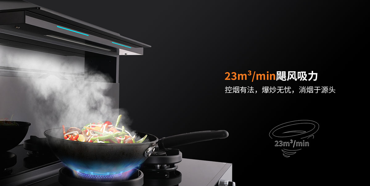 - 23m³颶風(fēng)吸力,控?zé)熡蟹?,爆炒無(wú)憂,消煙于源頭