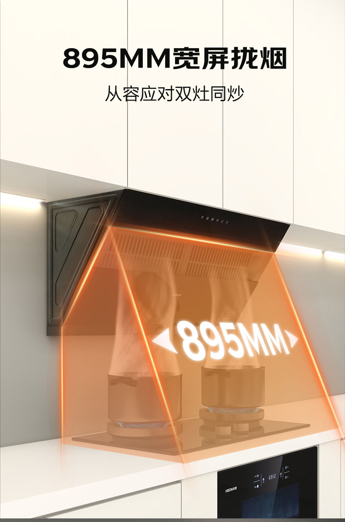 - 895MM寬屏攏煙,雙灶同烹,從容應(yīng)對(duì)