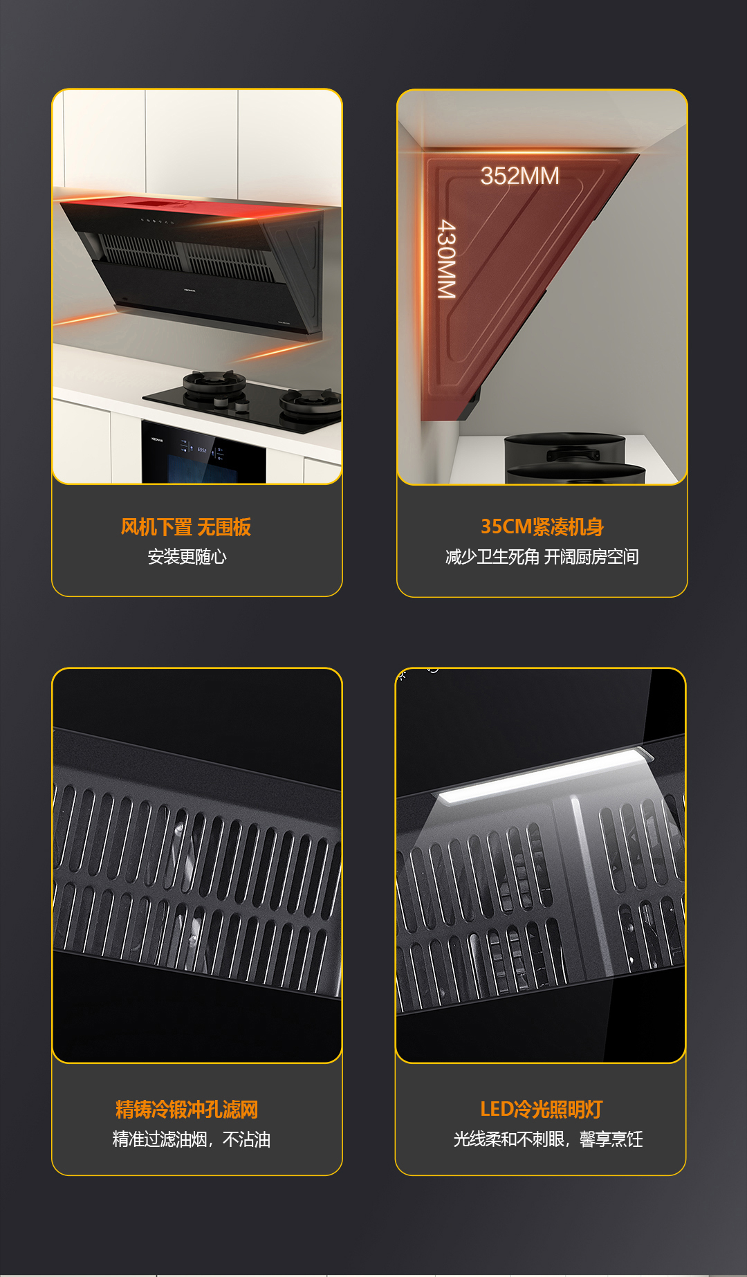 - 攏、吸、排三點(diǎn)一線(xiàn),暢吸直排,高效凈煙