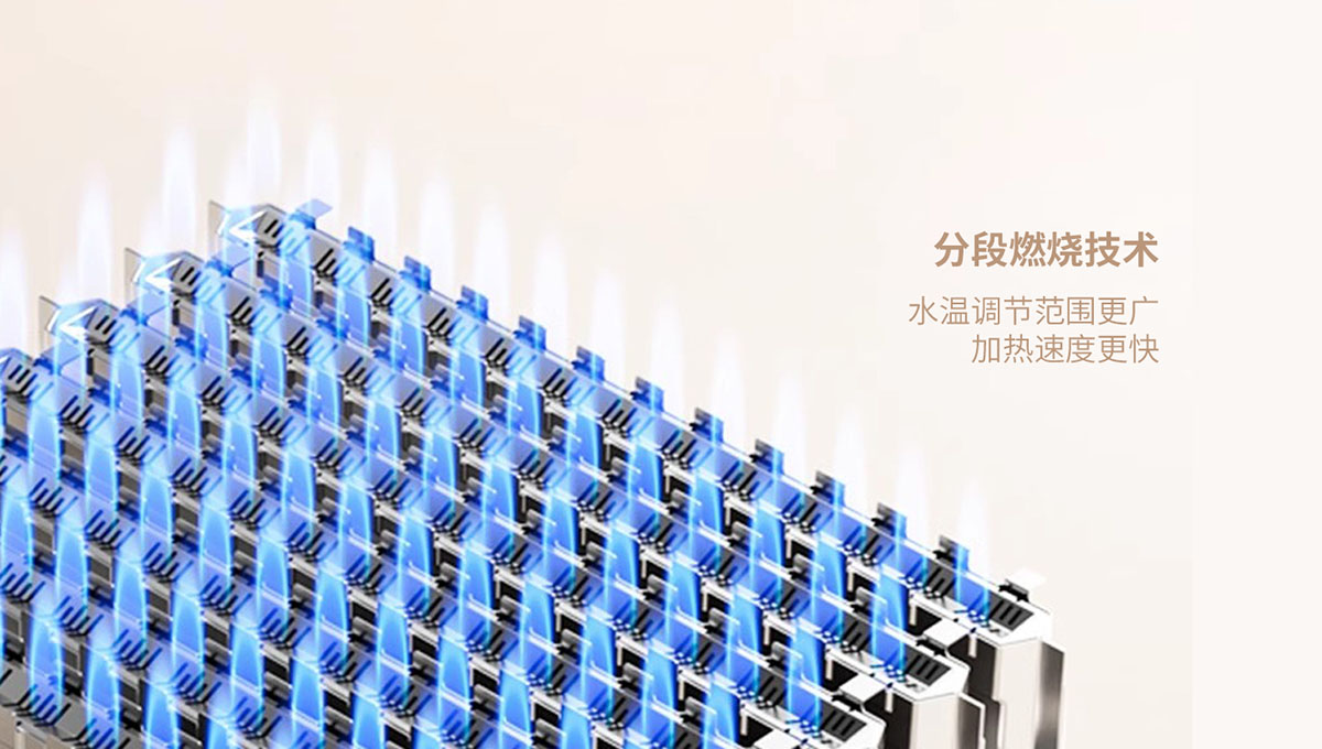 - 分段燃燒技術(shù),⽔溫調(diào)節(jié)范圍更廣,加熱速度更快