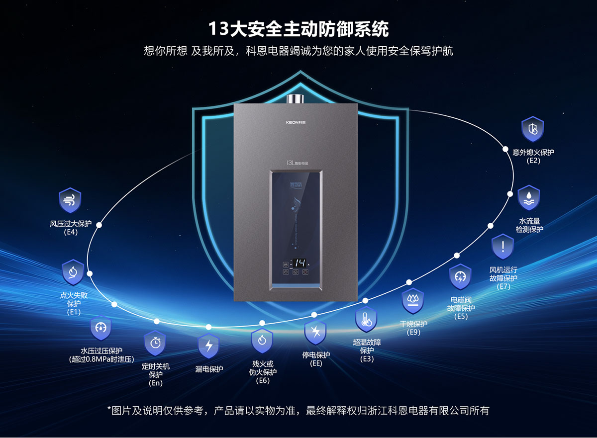 - 極速智能恒溫技術,精確的燃氣比例閥恒溫調(diào)節(jié)系統(tǒng)。