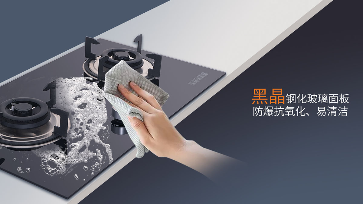 - 黑晶鋼化玻璃面板,防爆抗氧化、易清潔
