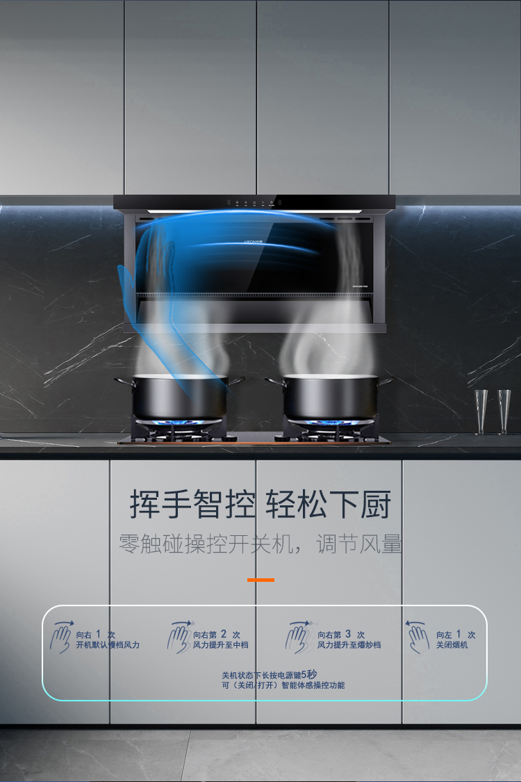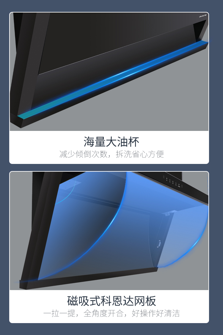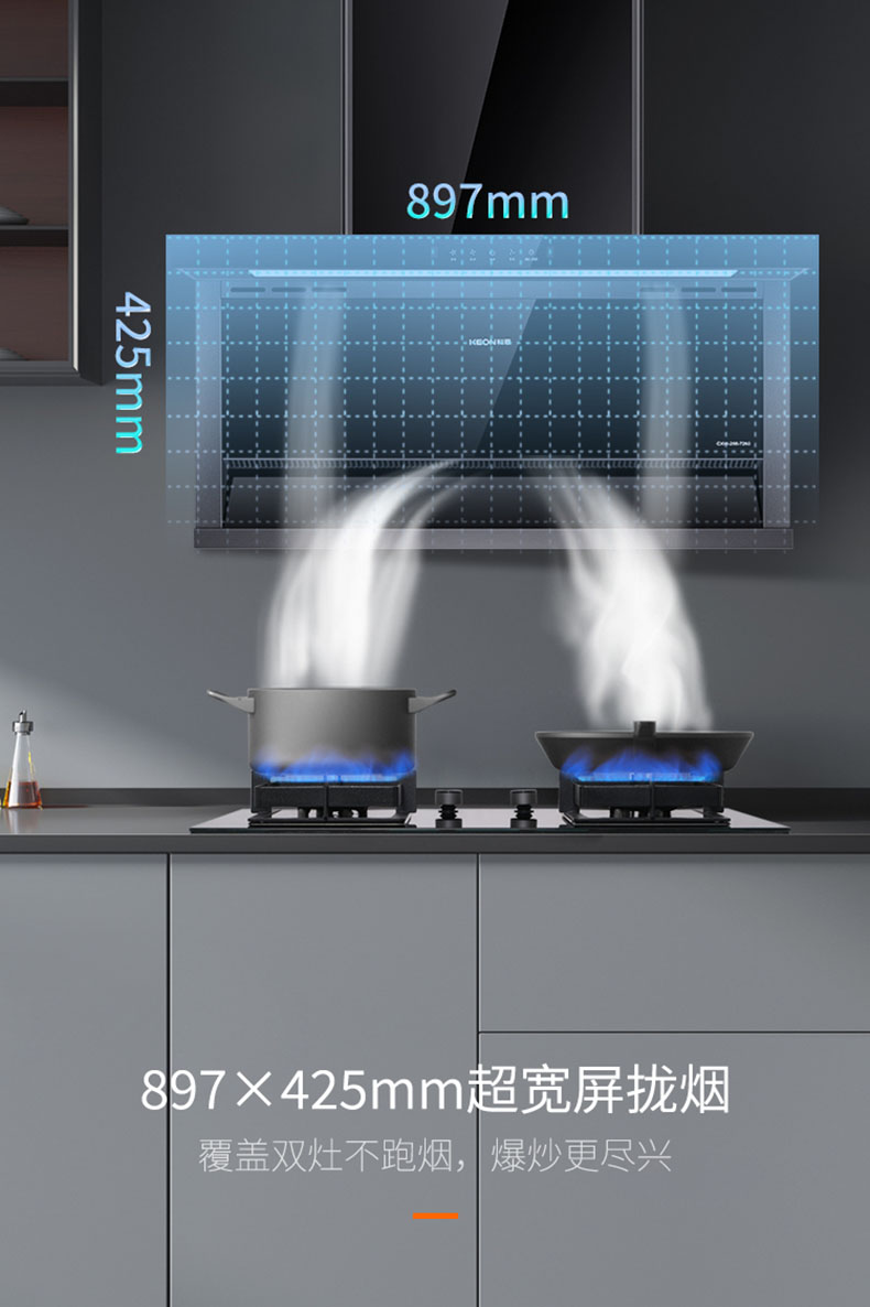 - 897×425mm超寬屏攏煙,覆蓋雙灶不跑煙,爆炒更盡興