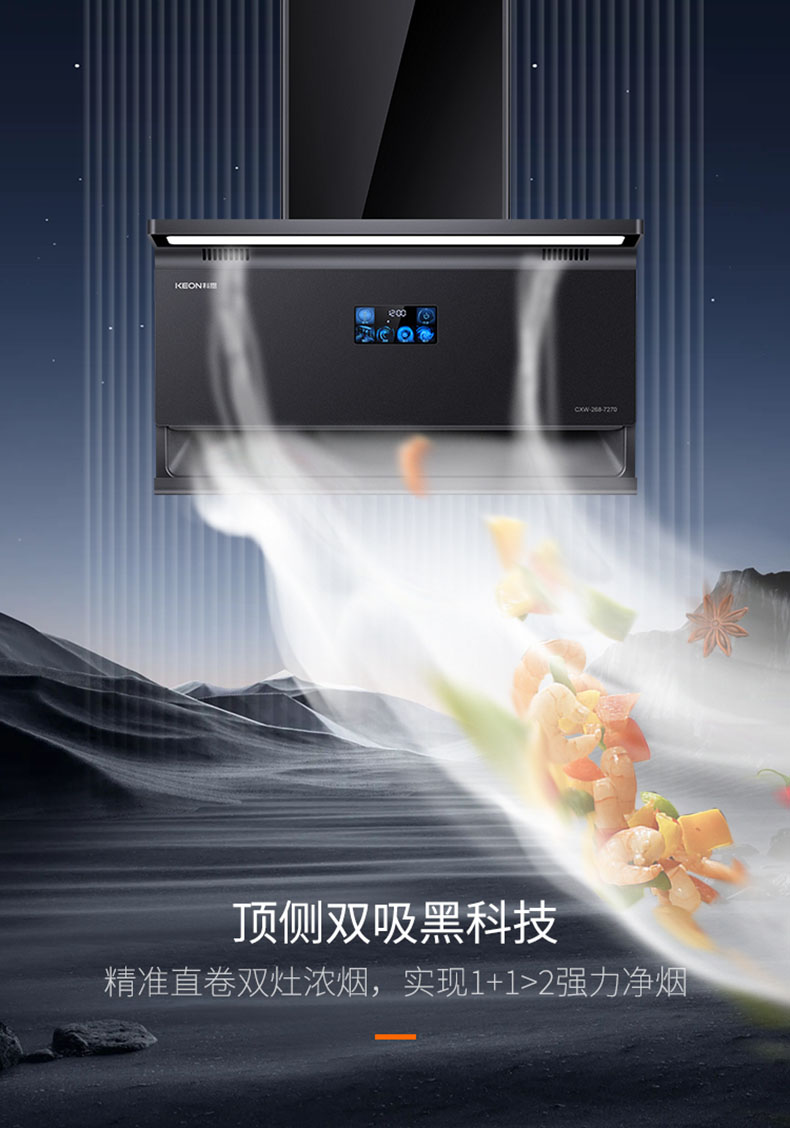- 頂側雙吸,精準直卷雙灶濃煙