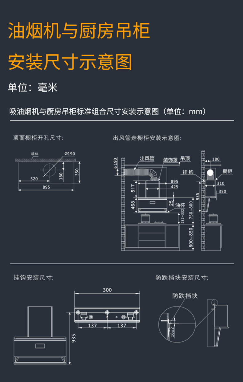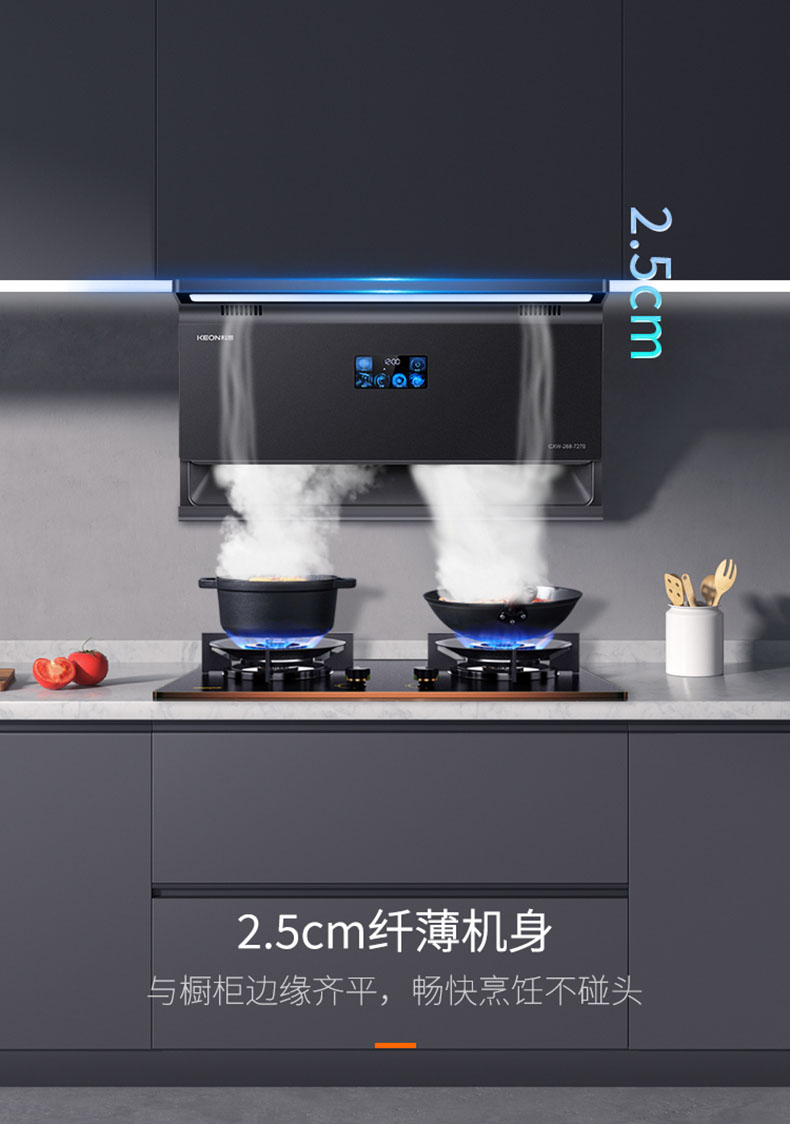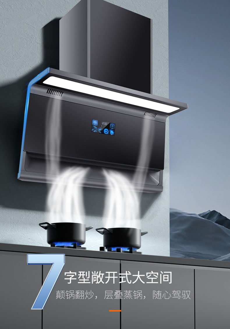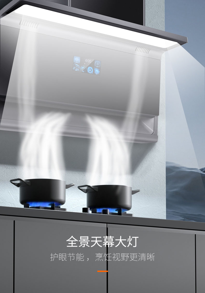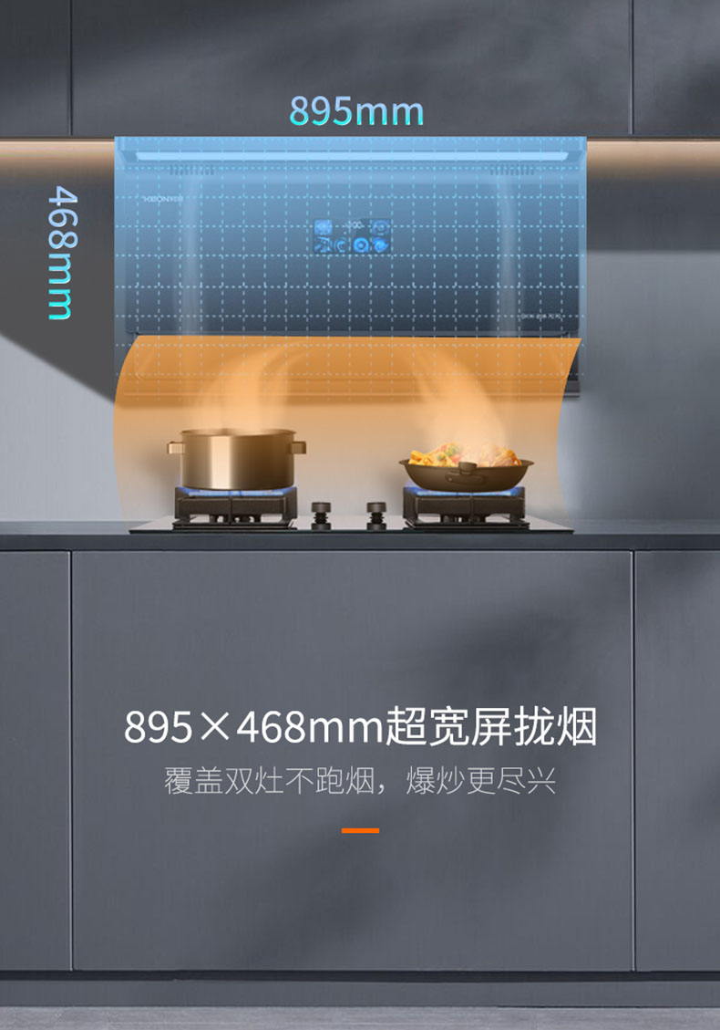 - 895×468mm超寬屏攏煙,覆蓋雙灶不跑煙