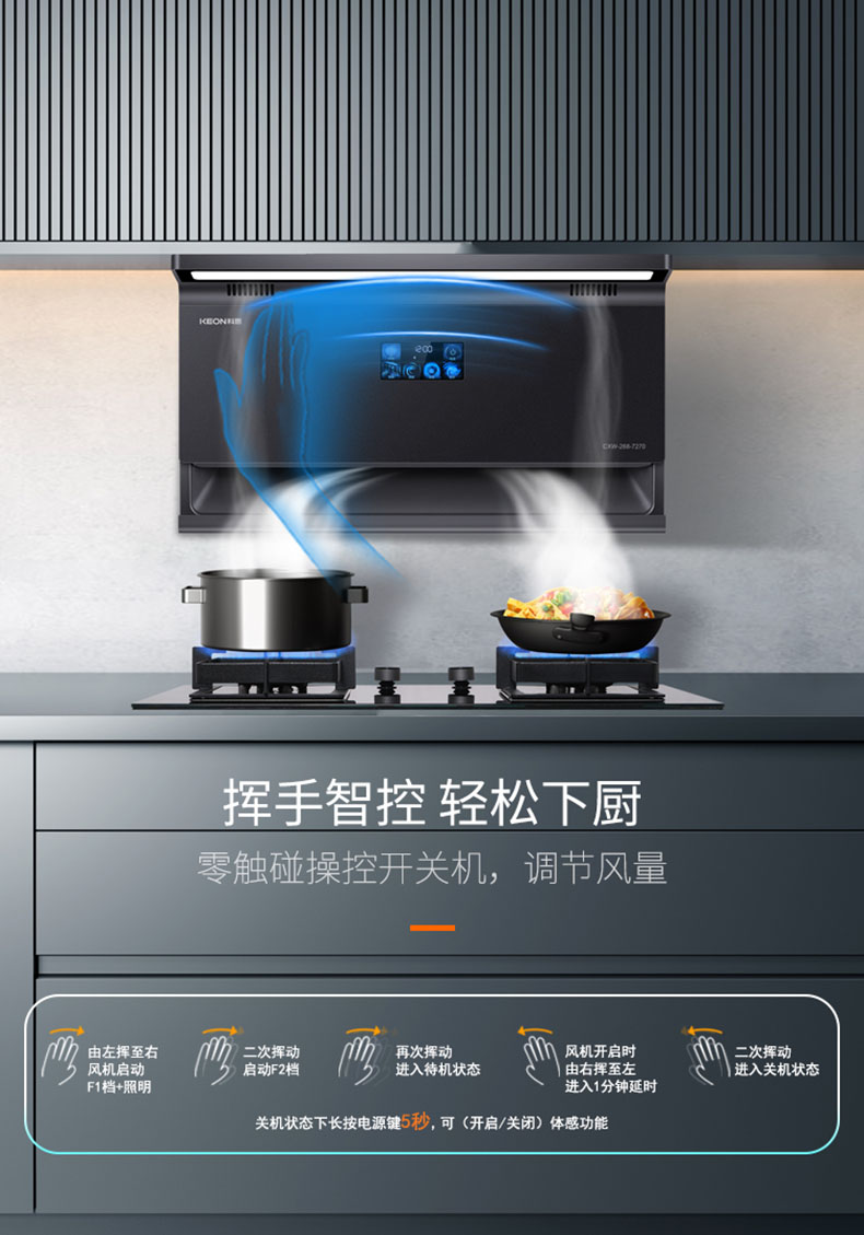 - 揮手智控,零觸碰操控開關機,調節(jié)風量